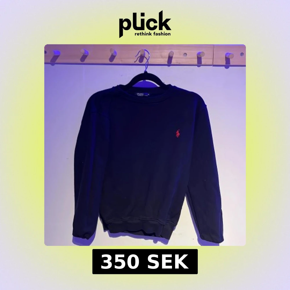 Säljer en klassisk svart tröja från Ralph Lauren med det ikoniska röda broderade logotypen på bröstet. Tröjan har långa ärmar och ribbade muddar vid ärmslut och nederkant. Perfekt för en stilren look. Står M men passar S