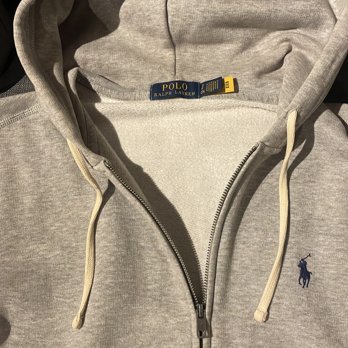 Snygg ljusgrå hoodie från Polo Ralph Lauren med dragkedja, huva med snörning och klassisk blå logga på bröstet. Tillverkad i mjuk bomullsmix och har två fickor framtill. Perfekt för en chill och stilren look.