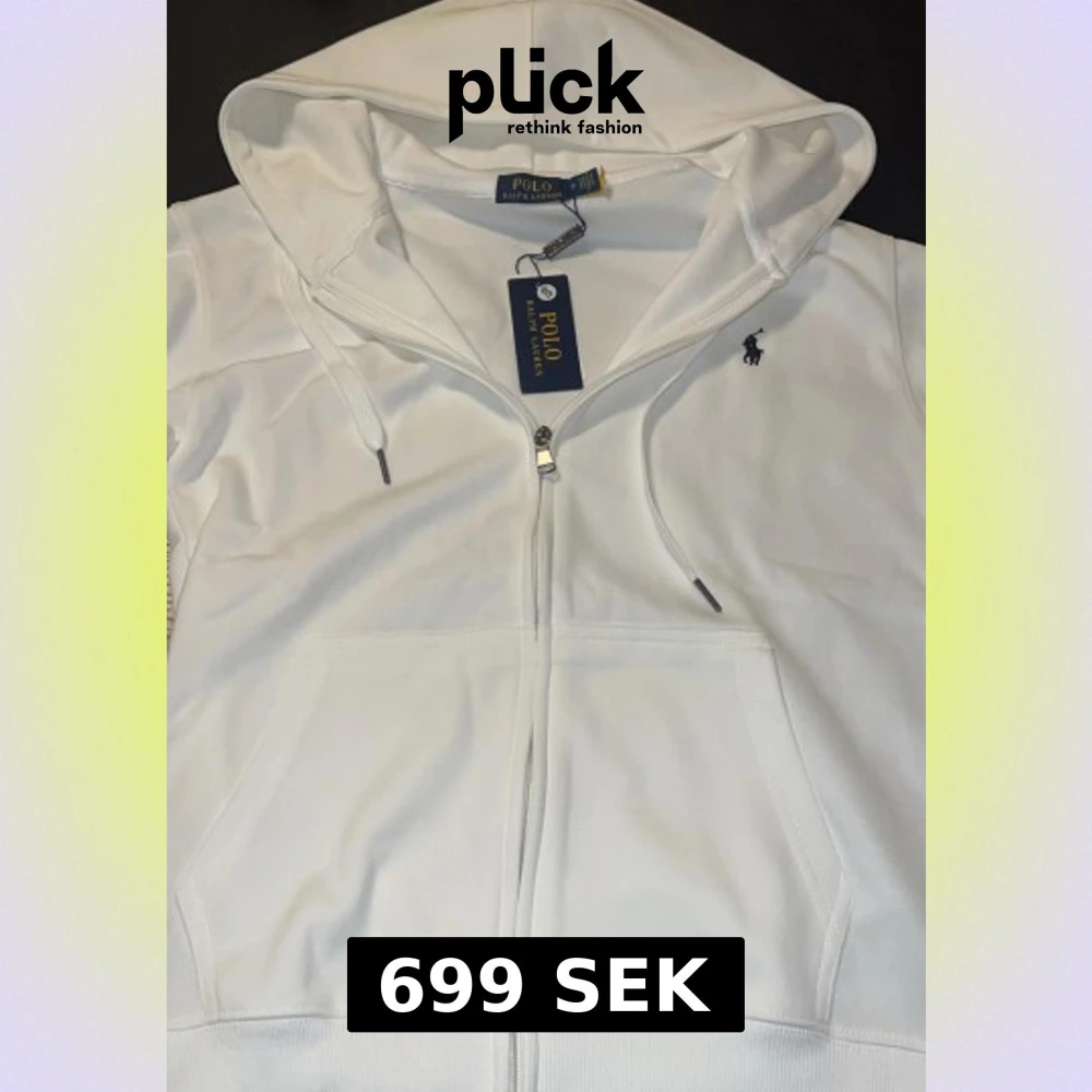 Vit hoodie från Polo Ralph Lauren med dragkedja och huva. Klassisk design med logobroderi på bröstet, två fickor fram och snörning i huvan. Tillverkad i mjuk bomullsmix som känns skön mot huden. Perfekt för chill dagar och streetwear.