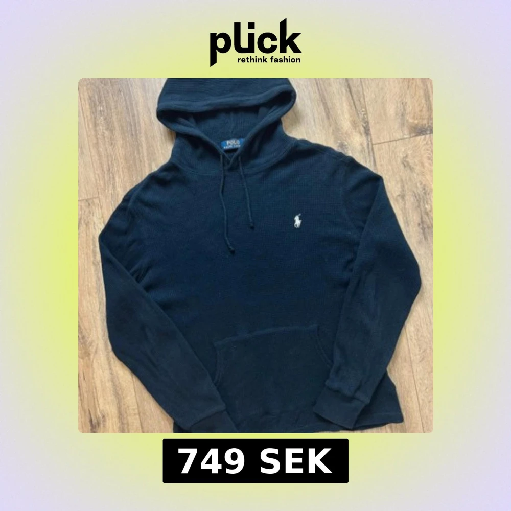 Svart hoodie från Polo Ralph Lauren med klassisk huva och dragsko. Tröjan har ett diskret broderat logomärke på bröstet och är tillverkad i ett grovstickat bomullstyg. Perfekt för en chill och stilren look. Medium men passar Small