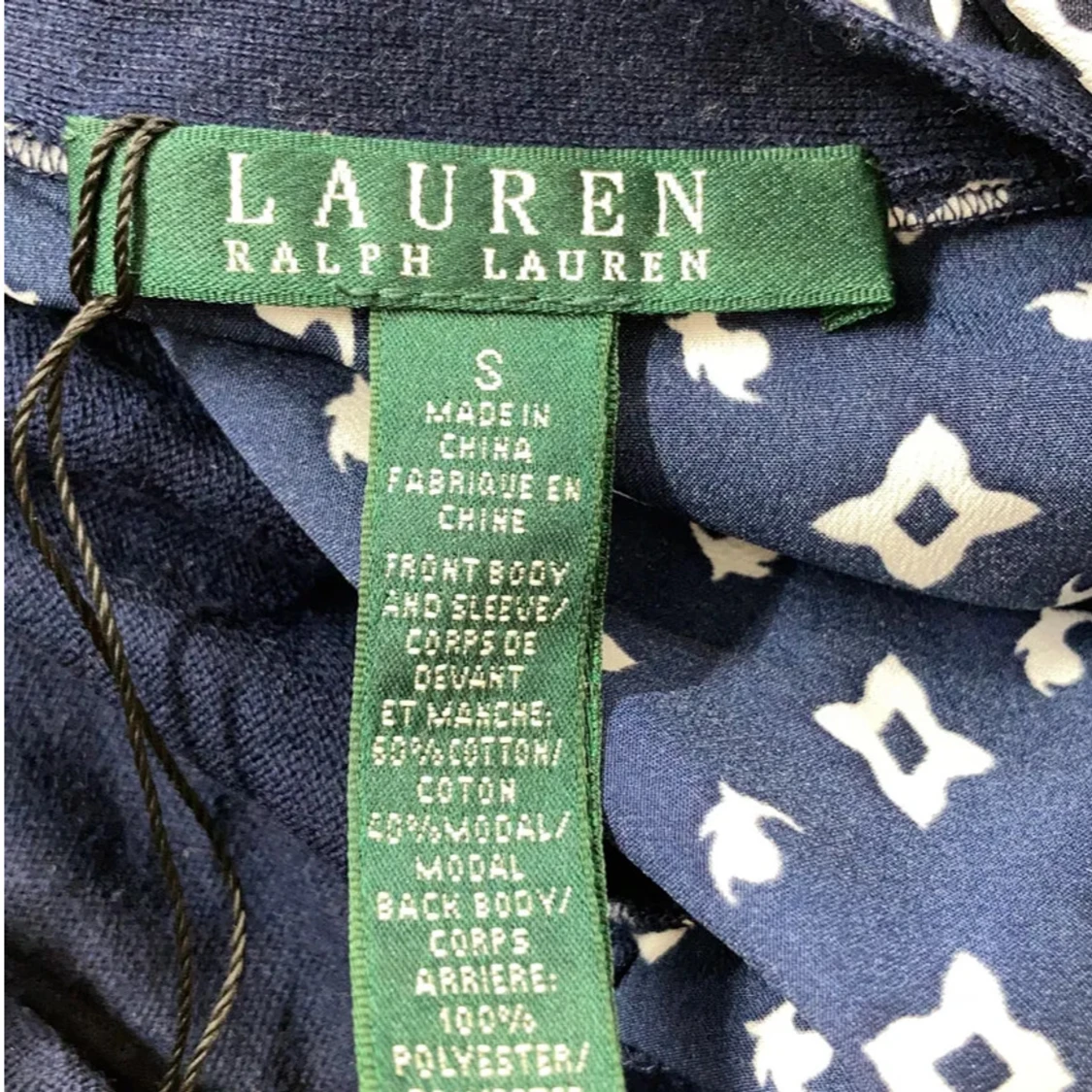 Snygg mörkblå kofta från Ralph Lauren med ett unikt mönster på baksidan i vitt. Koftan har långa ärmar och knäpps med stiliga knappar framtill. Perfekt för att ge en elegant touch till din outfit.