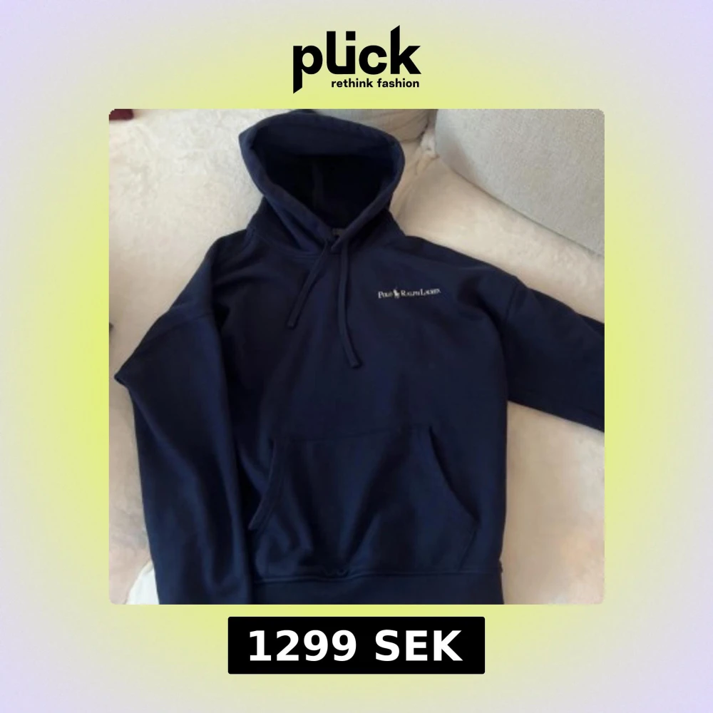 Säljer en marinblå hoodie från Polo Ralph Lauren med broderad logga på bröstet. Tröjan har huva med snörning och en stor magficka. Perfekt för dig som gillar klassisk och stilren hoodie. S men sitter mer åt de baggy hållet som en skön hoddie ska.
