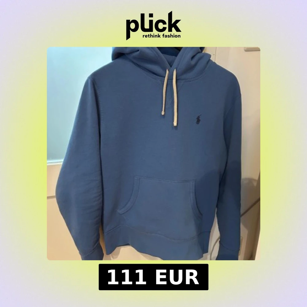 Säljer en snygg blå hoodie från Ralph Lauren med klassisk känguruficka och justerbar huva med vita snören. Perfekt för en avslappnad stil.