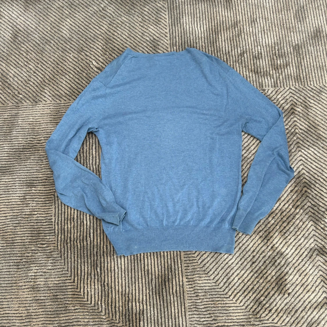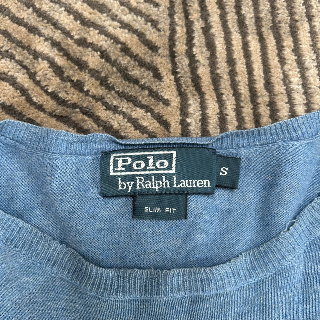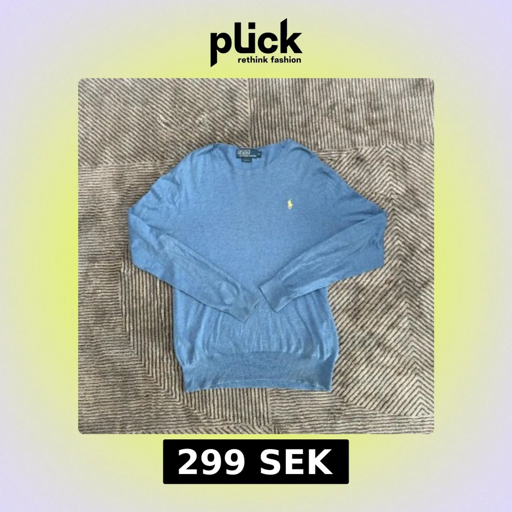 Blå stickad tröja från Polo Ralph Lauren i slim fit med klassisk gul broderad logga på bröstet. Långärmad modell med rund hals och ribbade muddar. Perfekt för lager-på-lager och snygg till jeans eller chinos.