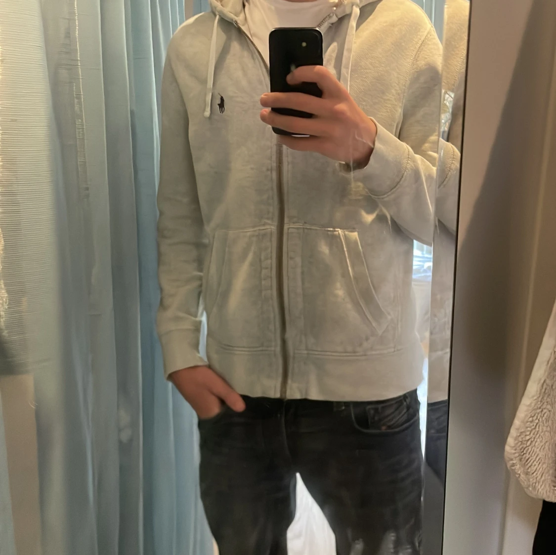 Skitsnygg ljusgrå hoodie från Polo Ralph Lauren med dragkedja. Pris ej hugget i sten! Hör av er vid fundering!❤️