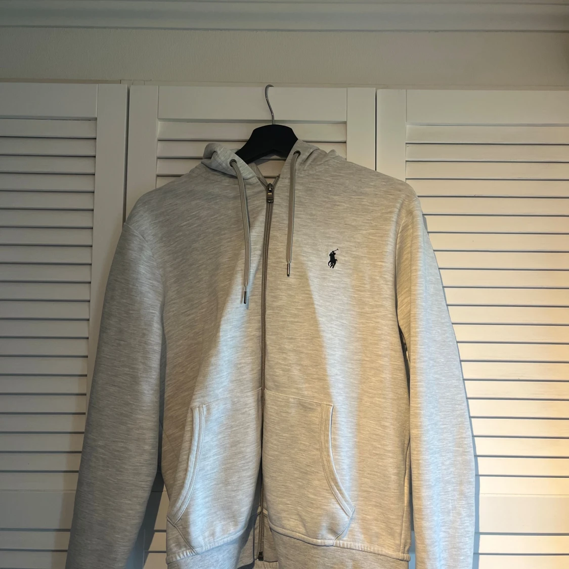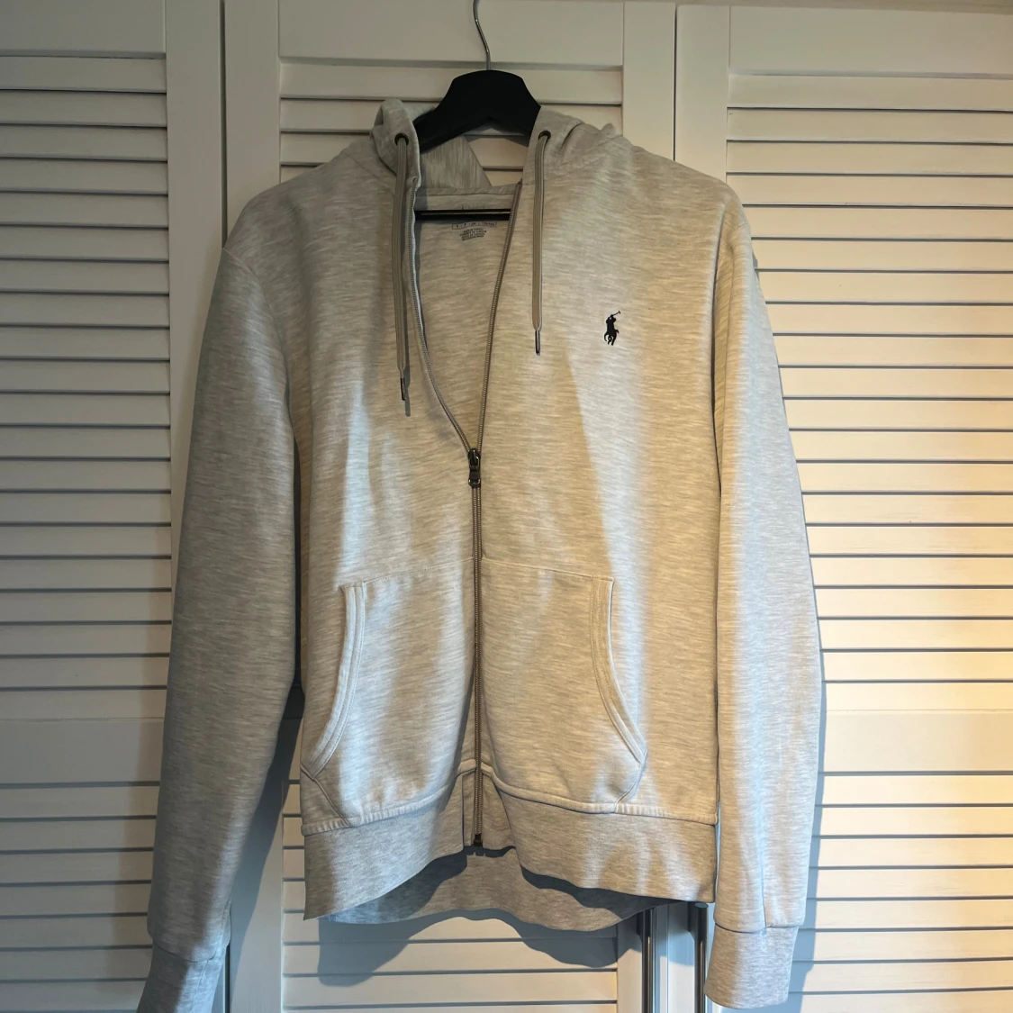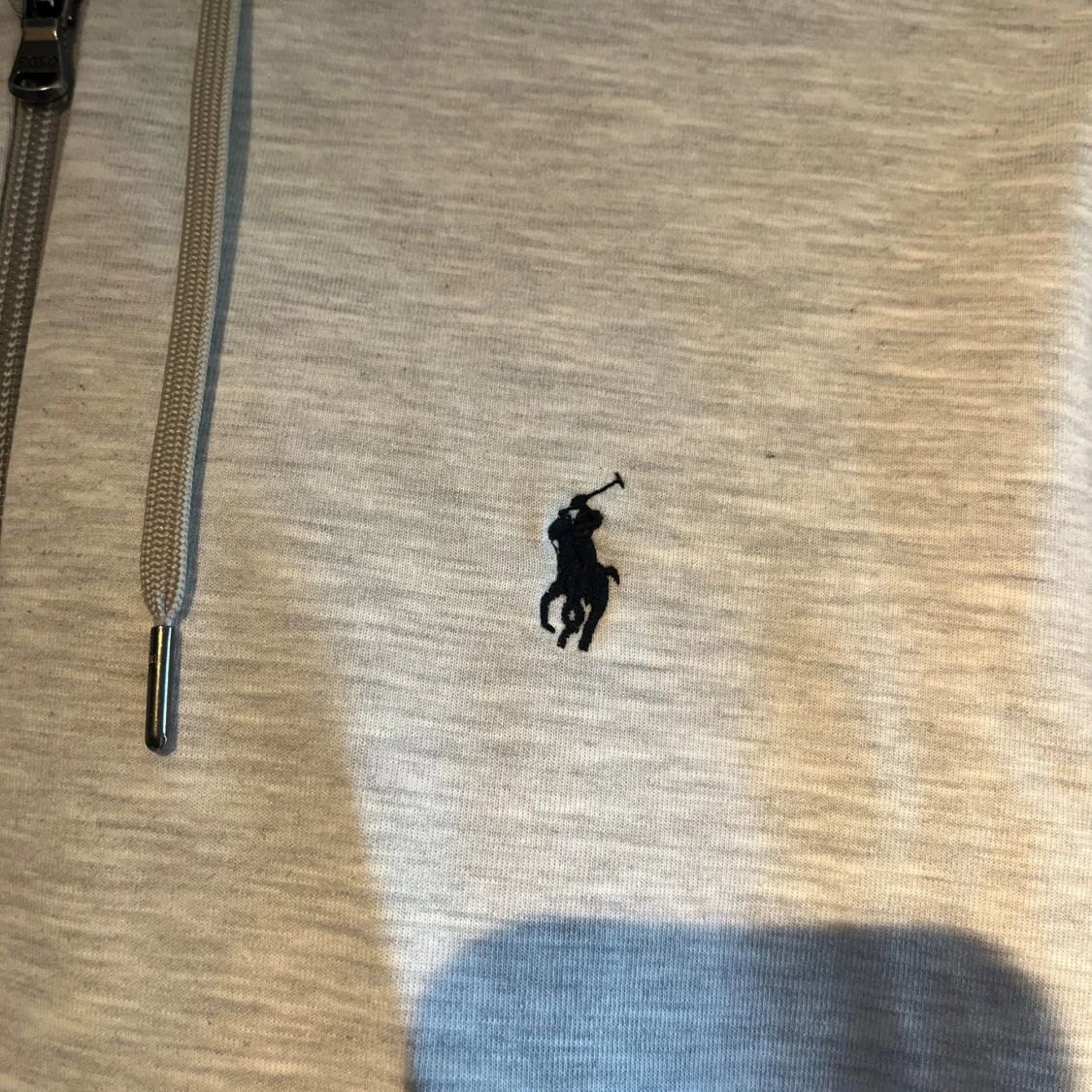 Snygg ljusgrå hoodie från Polo Ralph Lauren med broderad logga på bröstet. Tröjan har huva med snörning, dragkedja framtill och två stora fickor. Perfekt för chill dagar och enkel att matcha med jeans eller joggers. Köpt på pondus mycket bra skick mvh !