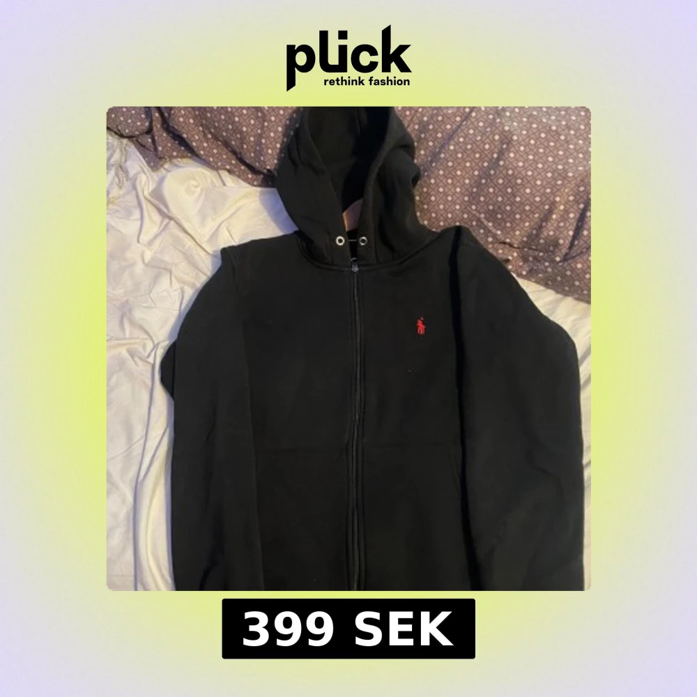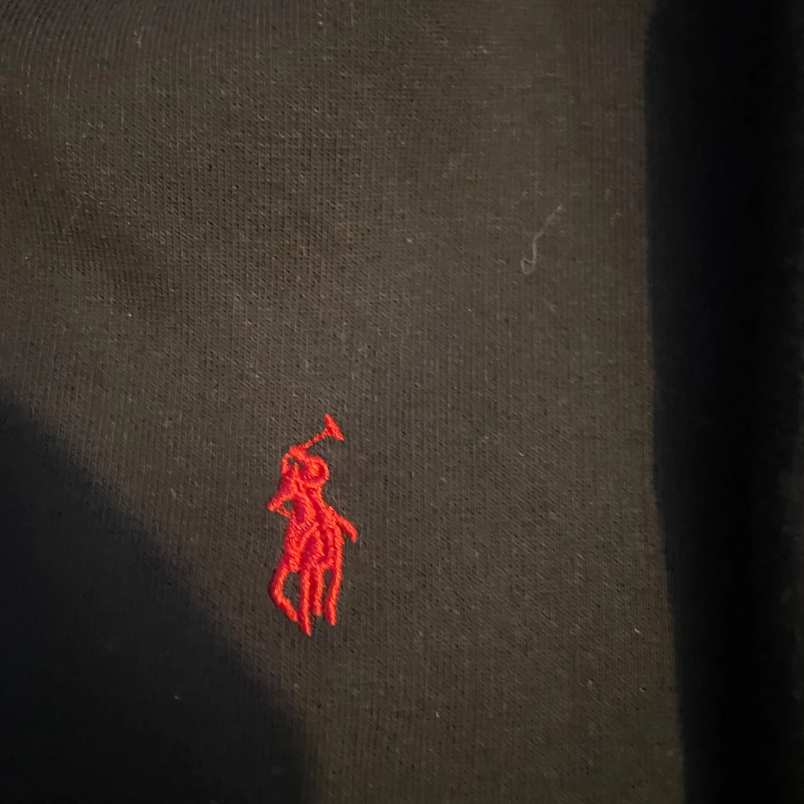 Svart hoodie från Ralph Lauren med dragkedja och huva. Klassisk röd broderad logga på bröstet. Mjuk och skön bomullskvalitet, perfekt för chill dagar. Snygg och enkel design med fickor framtill.