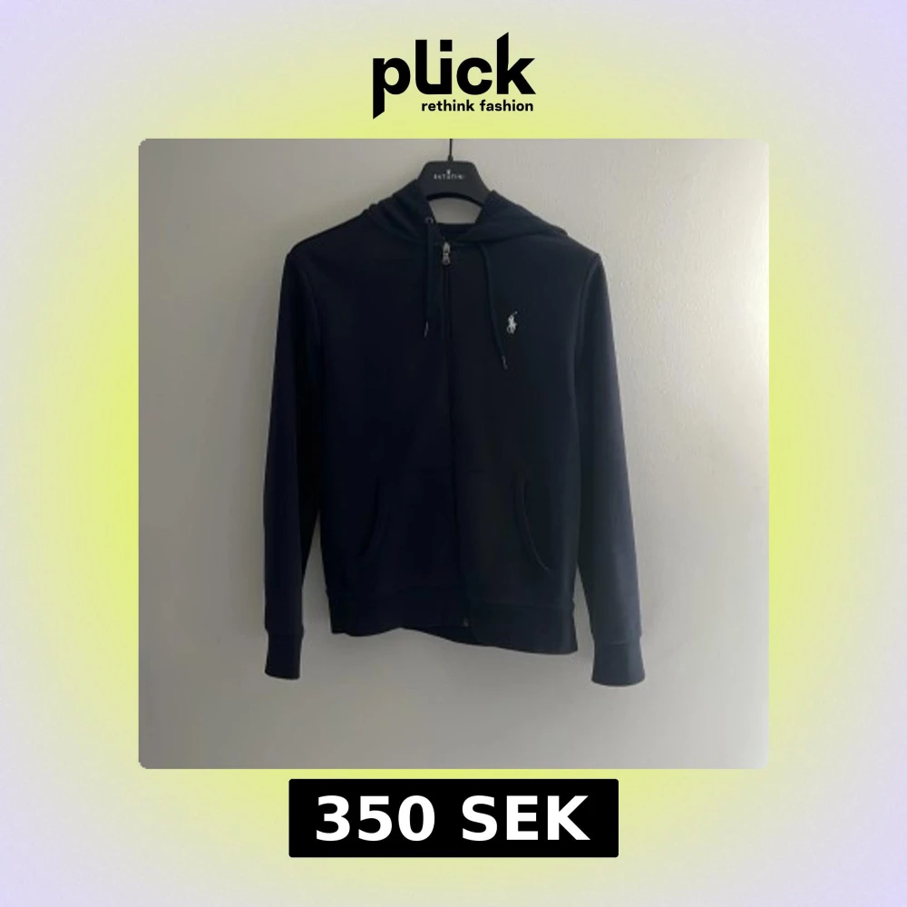 Snygg marinblå hoodie från Polo Ralph Lauren med dragkedja och klassisk vit logga på bröstet. Nypris 1499kr. Använd under 1 år. Storlek small.