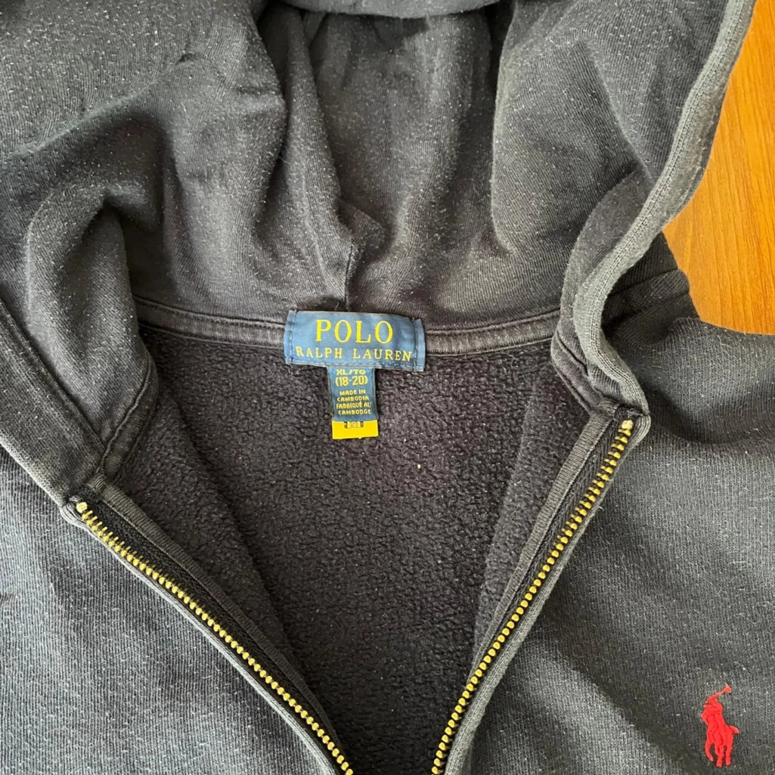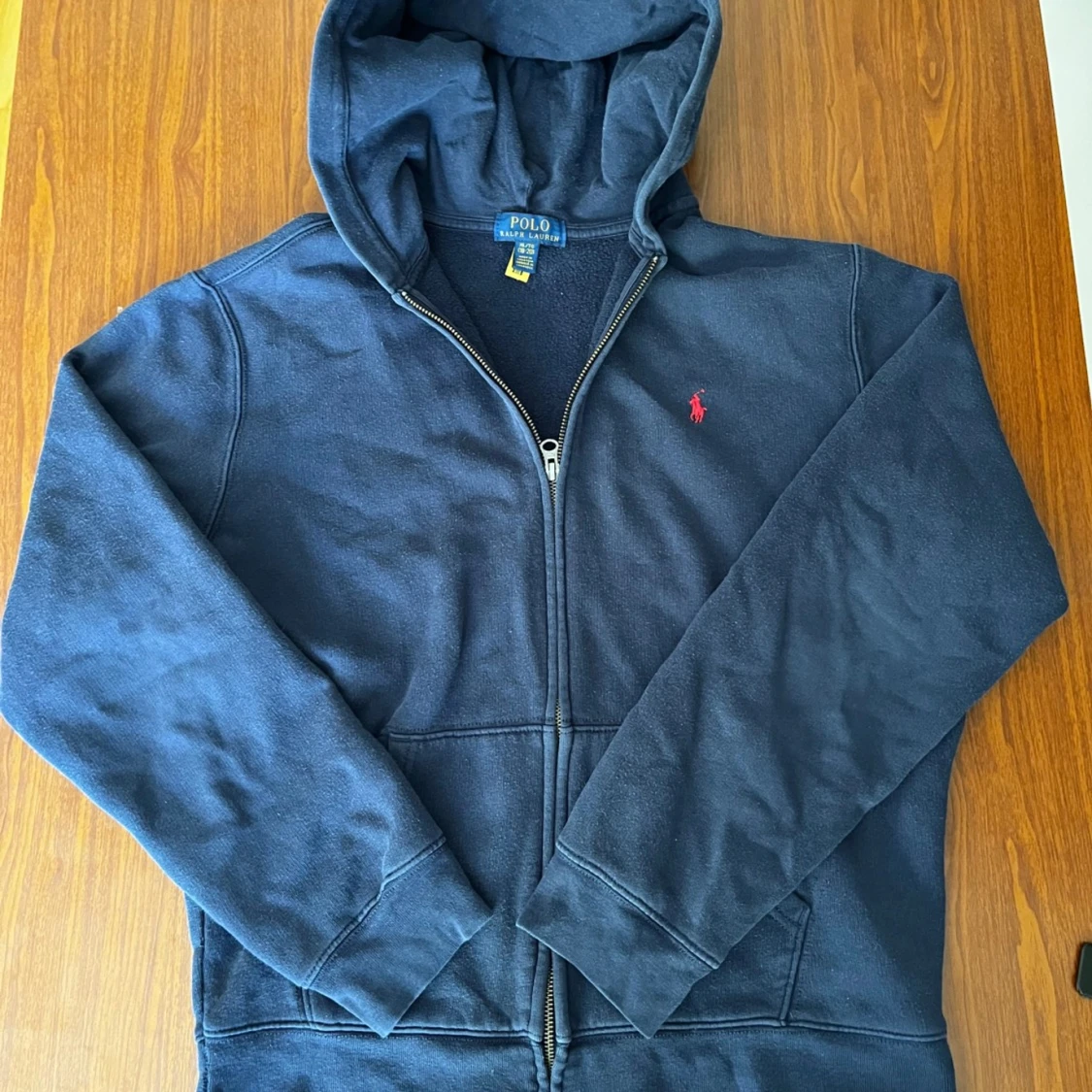 Snygg mörkblå zip från Polo Ralph Lauren. Storlek XL barn som funkar som vuxen S. Koftan har det klassiska röda Polo-logot broderat på bröstet och är tillverkad i mjuk bomull.
