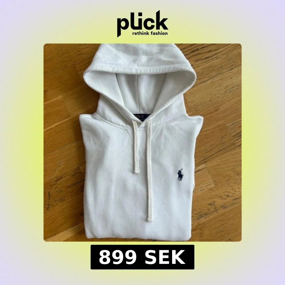 Säljer en stilren vit hoodie från Ralph Lauren med klassisk logga på bröstet. Tröjan har en bekväm passform med känguruficka och justerbar huva med snören.