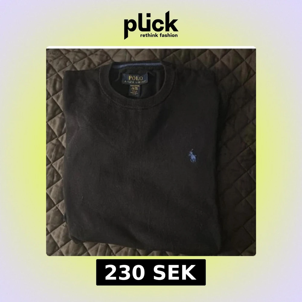 Säljer en klassisk svart tröja från Ralph Lauren med det ikoniska blå logotypbroderiet på bröstet. Tröjan har en rund halsringning och är perfekt för en stilren look. Passar bra till både jeans och chinos. (Kolla andra annonsen som är såld för mer information)