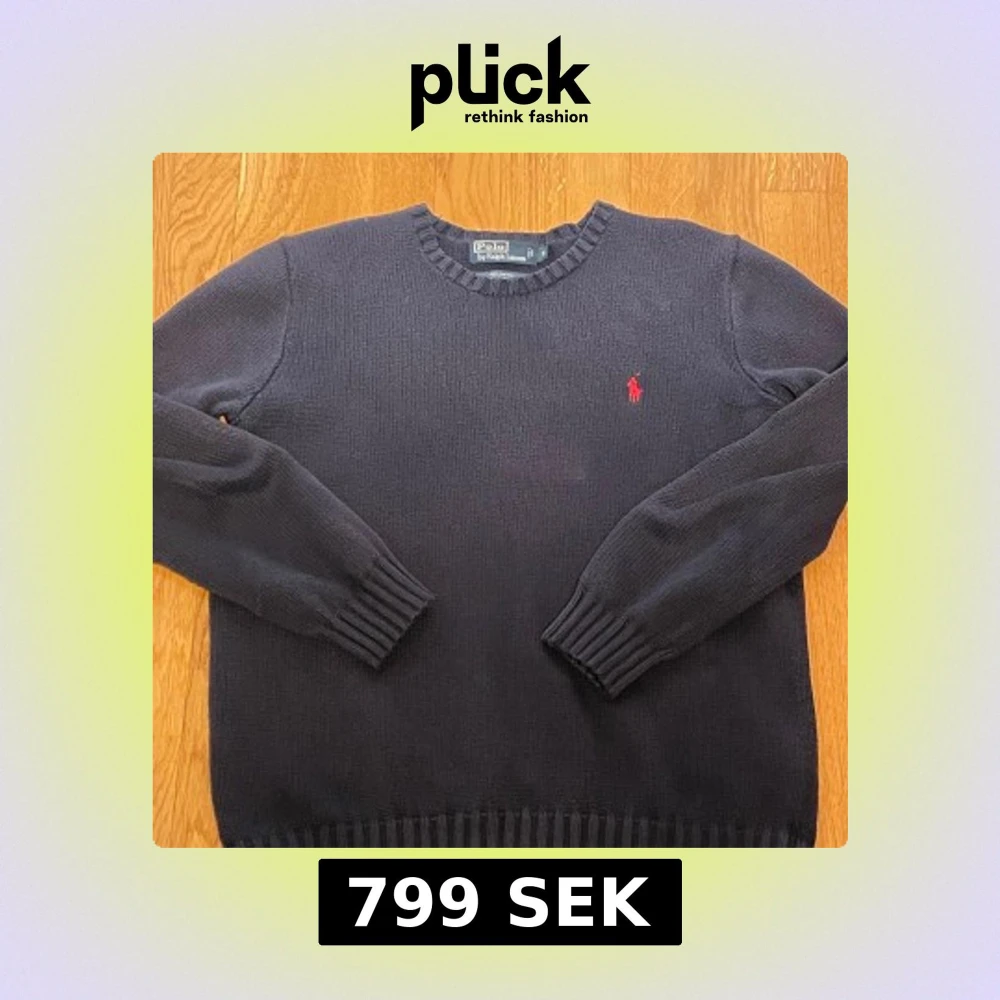 Säljer en stilren mörkblå tröja från Polo Ralph Lauren. Bra skick utan defekter. Modellen är 180 cm 70 kg