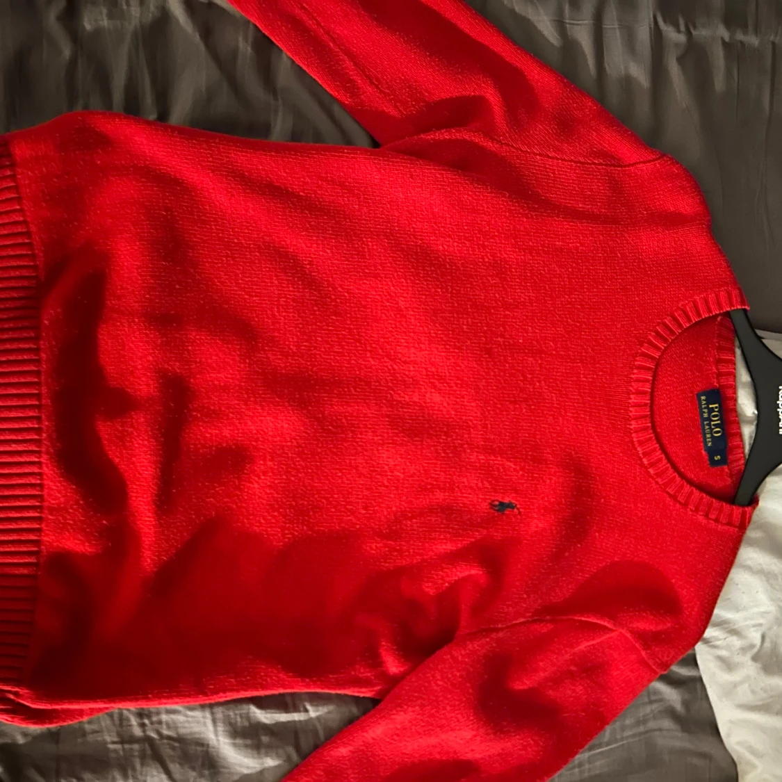 Klassisk röd stickad tröja från Polo Ralph Lauren med rund halsringning och diskret broderad logga på bröstet. Perfekt för lager-på-lager och passar till många olika stilar.