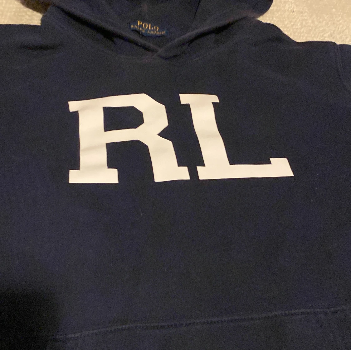 Snygg mörkblå hoodie från Polo Ralph Lauren med stor vit RL-logga på bröstet. Klassisk huva och känguruficka framtill. Perfekt för dig som gillar stilrena och sportiga plagg med premiumkänsla.
