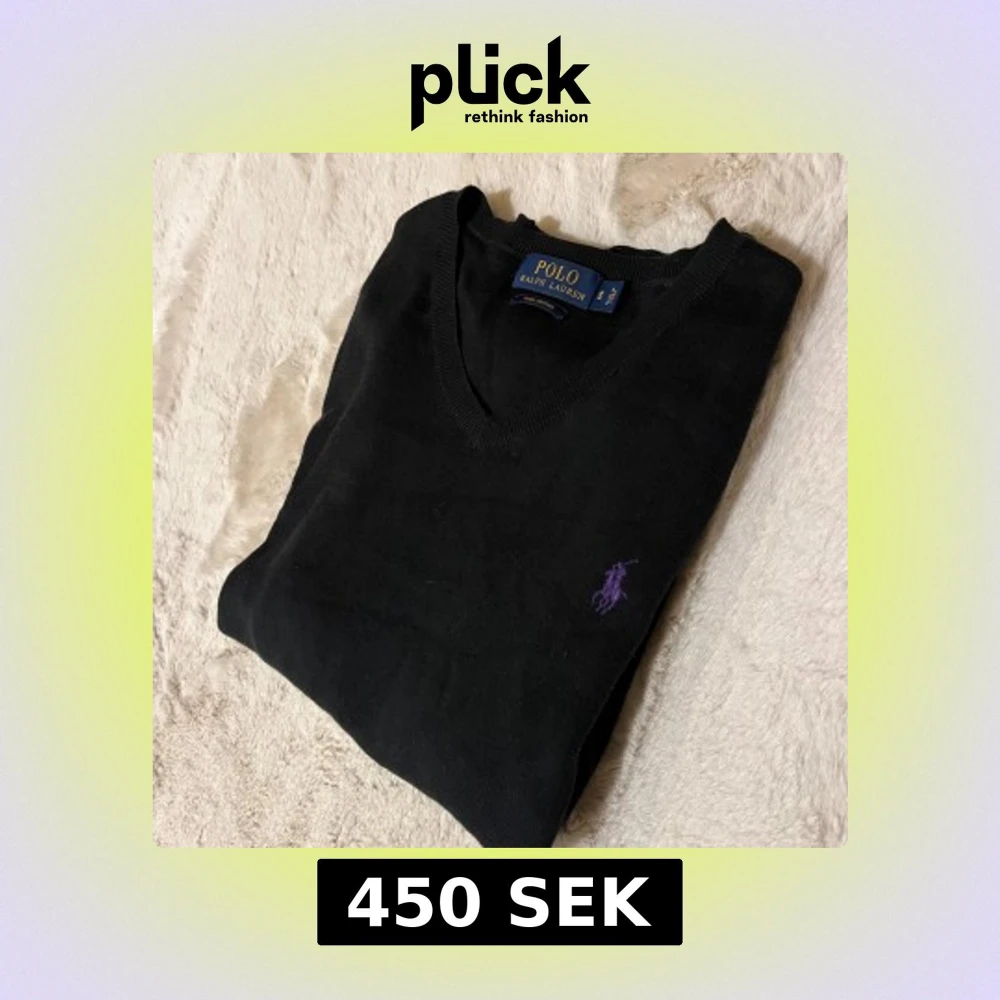 Snygg svart tröja från Ralph Lauren i pirma bomull. Tröjan har en v-ringad design och ett lila broderat logotyp på bröstet. Perfekt för en stilren look.
