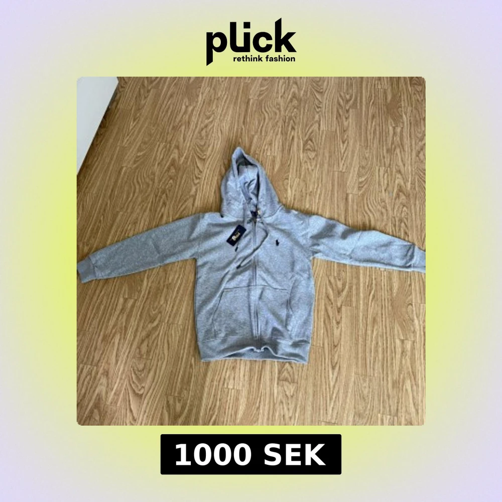 Säljer en klassisk grå hoodie från Polo Ralph Lauren med dragkedja framtill och huva. Tröjan har två fickor och den ikoniska lilla broderade loggan på bröstet. Perfekt för en avslappnad och stilren look.