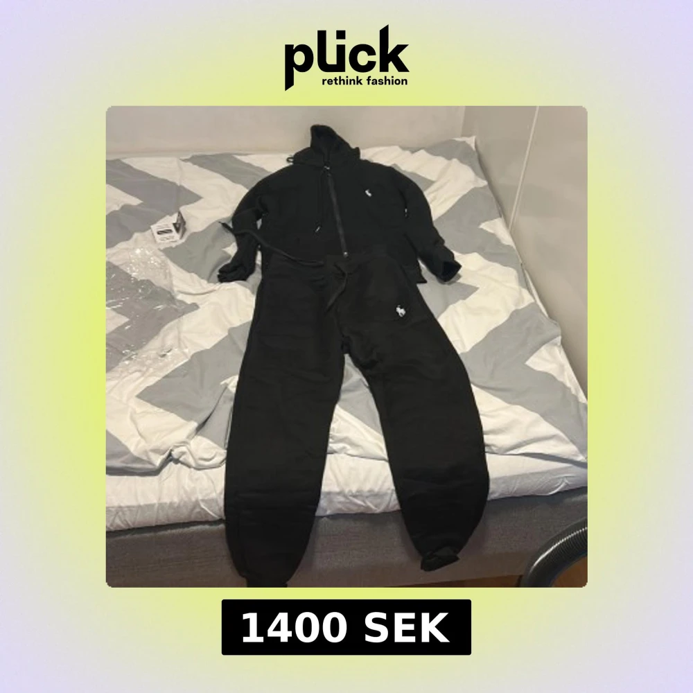 Säljer ett svart set från Ralph Lauren med hoodie och matchande byxor. Hoodien har dragkedja, huva med snörning och den klassiska loggan på bröstet. Byxorna har resår i midjan och logga på benet. Perfekt för en avslappnad stil.