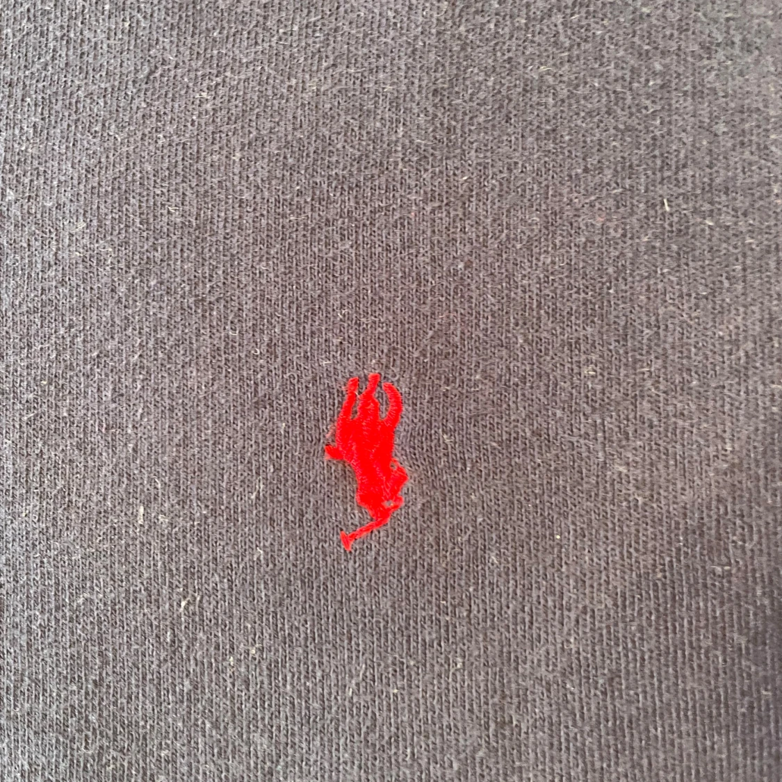Klassisk mörkblå sweatshirt från Polo Ralph Lauren med röd broderad logga på bröstet. Tröjan har rund halsringning, långa ärmar och är tillverkad i mjuk bomullsmix med fleeceinsida för extra komfort.