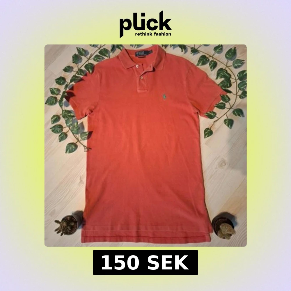 Snygg orange pikétröja från Ralph Lauren med klassisk krage och två knappar. Den har en liten grön logga broderad på bröstet. Perfekt för en stilren och avslappnad look.