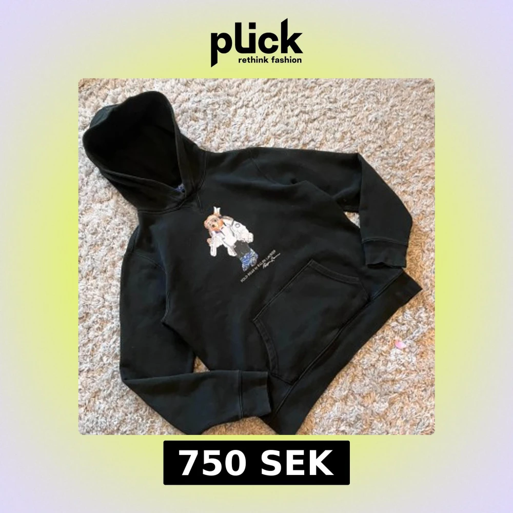 Svart hoodie från Polo Ralph Lauren med Polo Bear-tryck på bröstet. Tröjan har huva och magficka, samt en cool björn i skidkläder framtill. Perfekt för dig som gillar streetwear och klassiska märken.