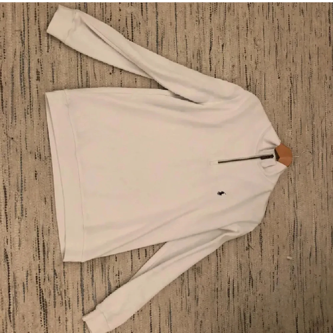 Vit långärmad tröja från Polo Ralph Lauren med klassisk half zip-dragkedja och broderad logga på bröstet. Tröjan har en stilren design och är tillverkad i mjuk bomull, perfekt för lager-på-lager under kyliga dagar.
