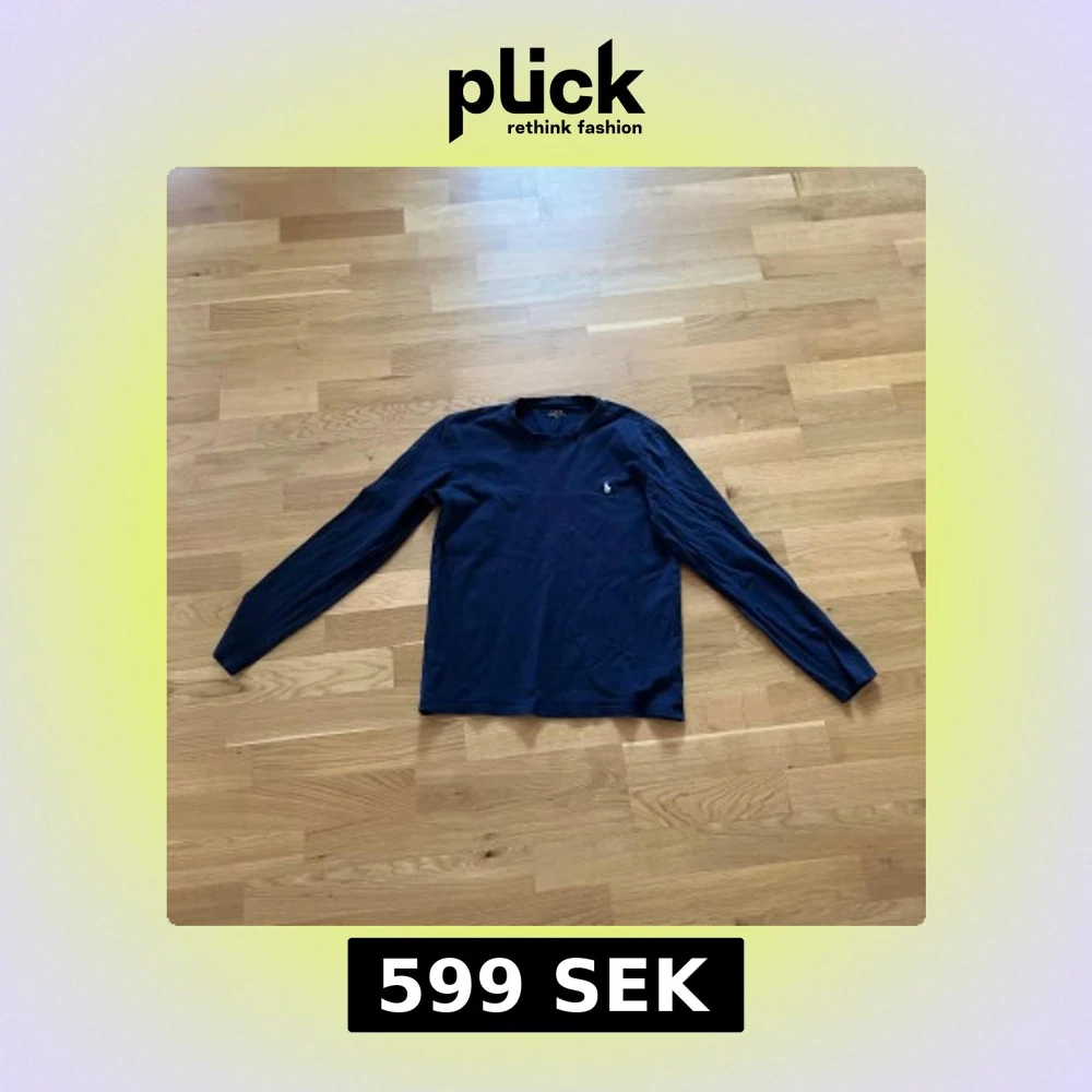 Säljer en stilren mörkblå långärmad tröja från Ralph Lauren, Bra passform och bra skick, inga defekter!