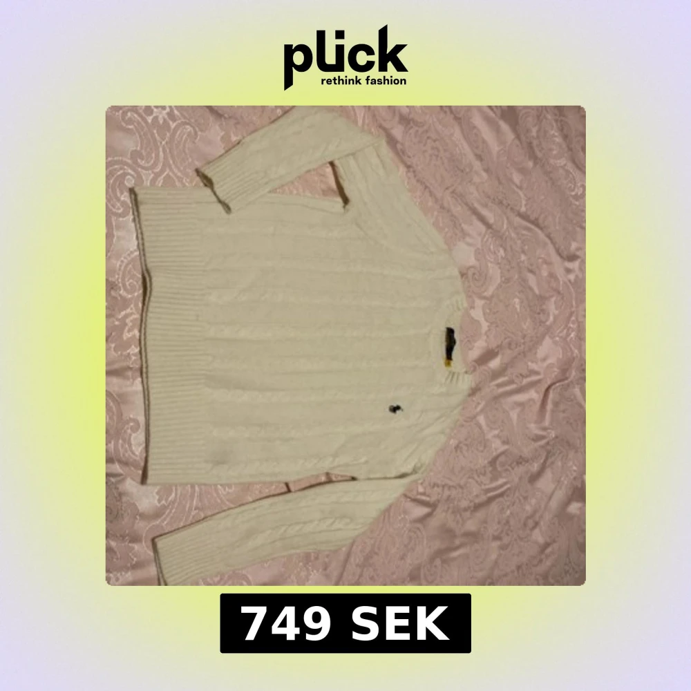 Säljer en stilren vit stickad tröja från Ralph Lauren med det klassiska broderade logotypen på bröstet. Tröjan har en kabelstickad design och långa ärmar, perfekt för kyligare dagar. Passar både till jeans och kjol för en avslappnad look.