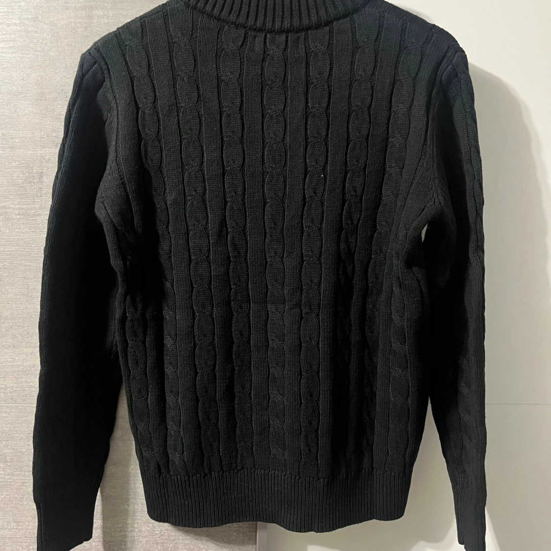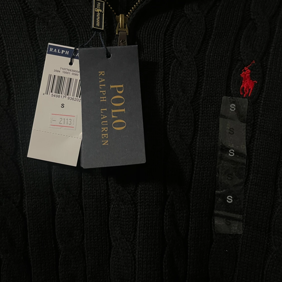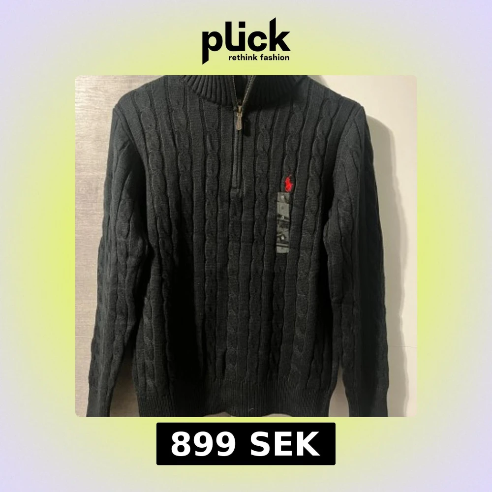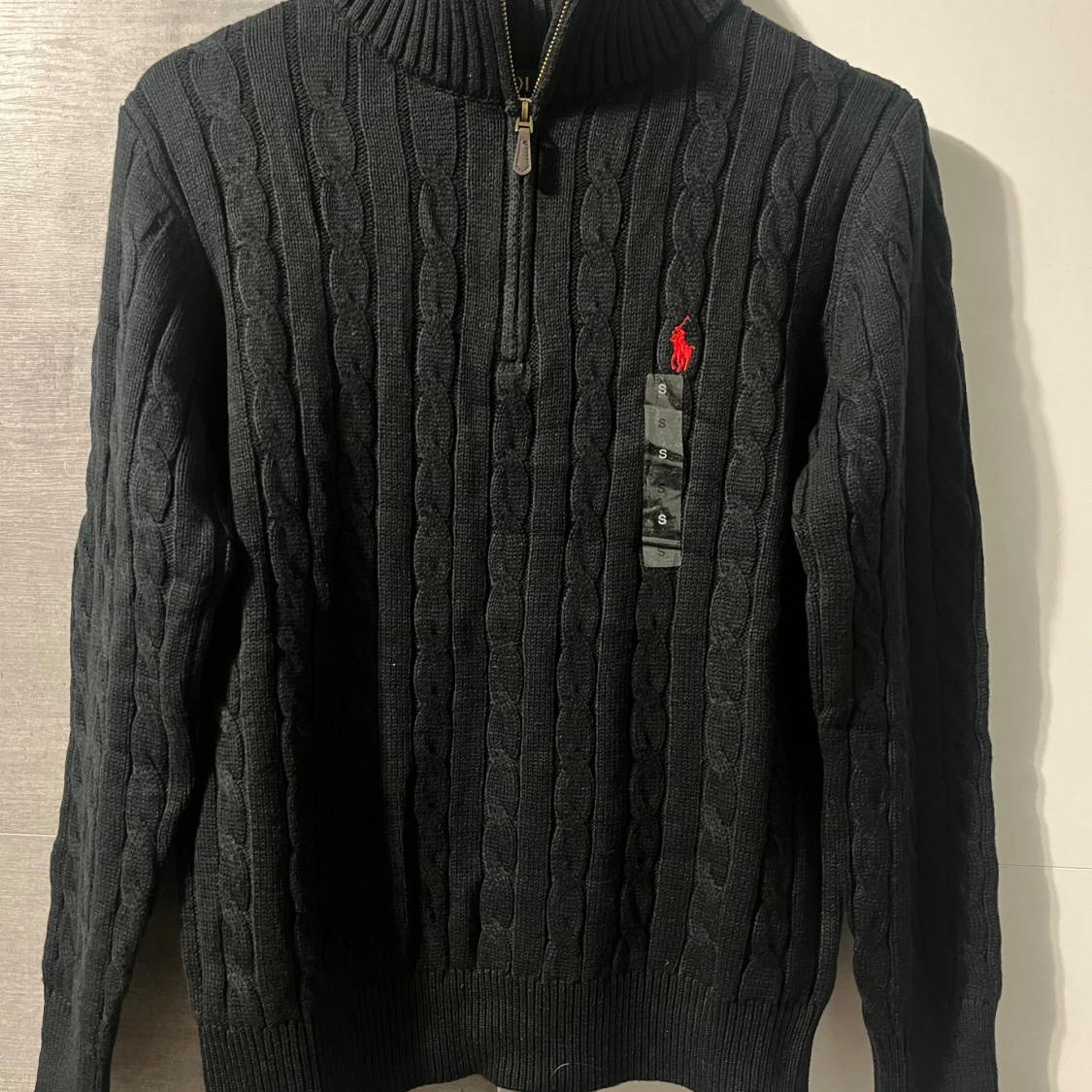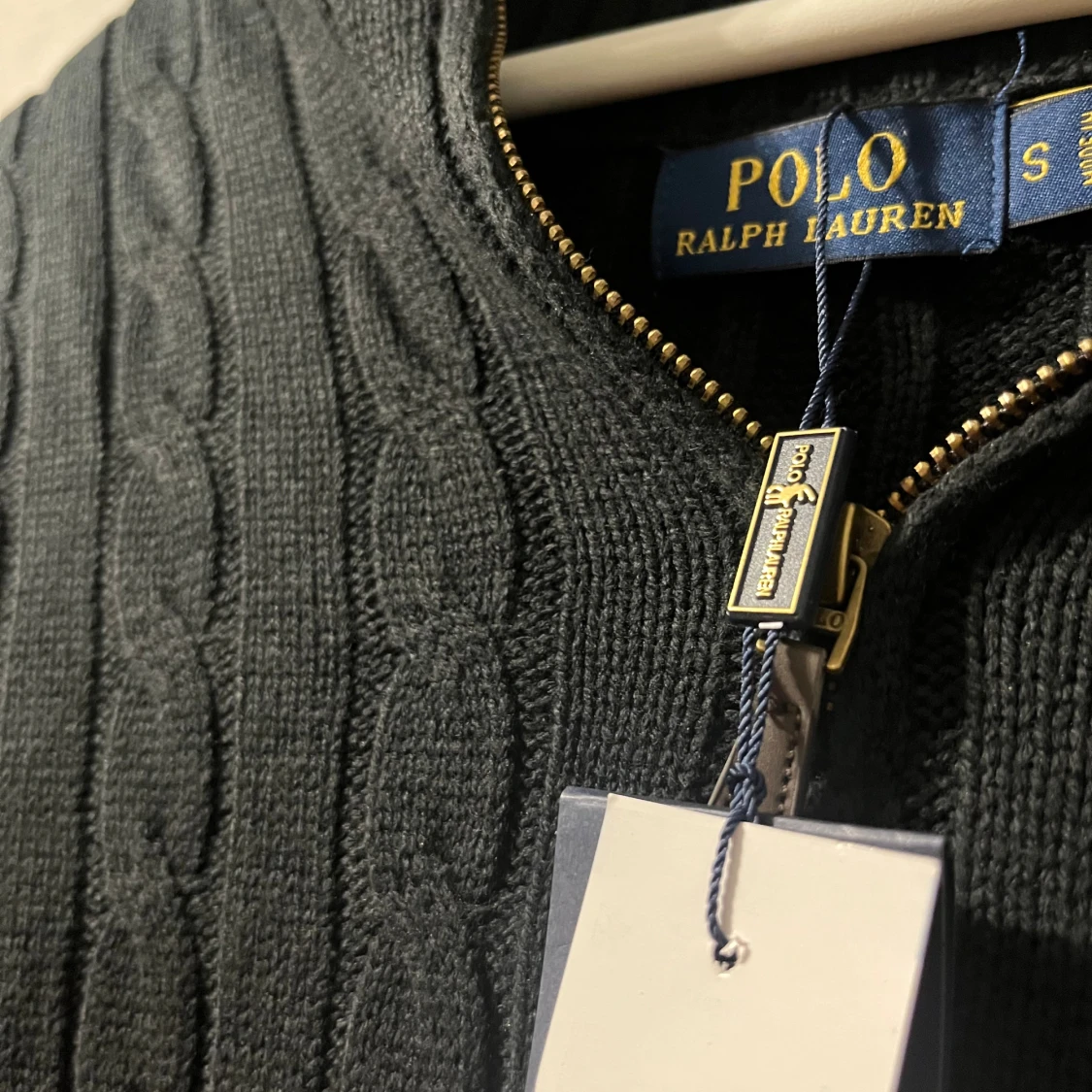 Orginal pris: 2113kr, endast för 750kr hos Luxe Vibes! Svart kabelstickad tröja från Polo Ralph Lauren med halv dragkedja och röd broderad logga på bröstet. Tröjan har hög krage, ribbade muddar och är tillverkad i mjukt stickat material. Perfekt för lager-på-lager under höst och vinter.