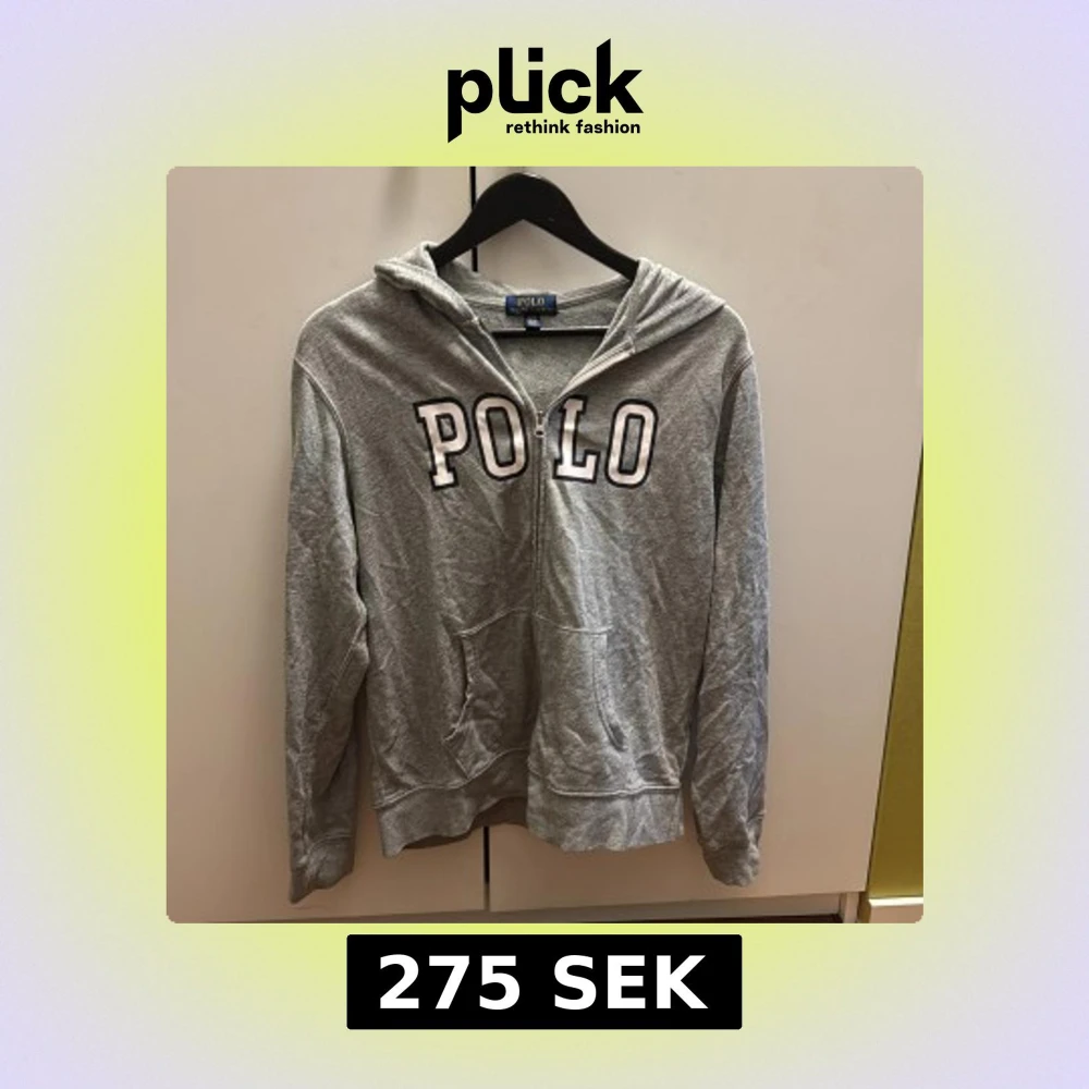 Grå hoodie från Polo Ralph Lauren med dragkedja och stor POLO-logga framtill. Tröjan har huva, känguruficka och långa ärmar. Perfekt för en chill och avslappnad stil.