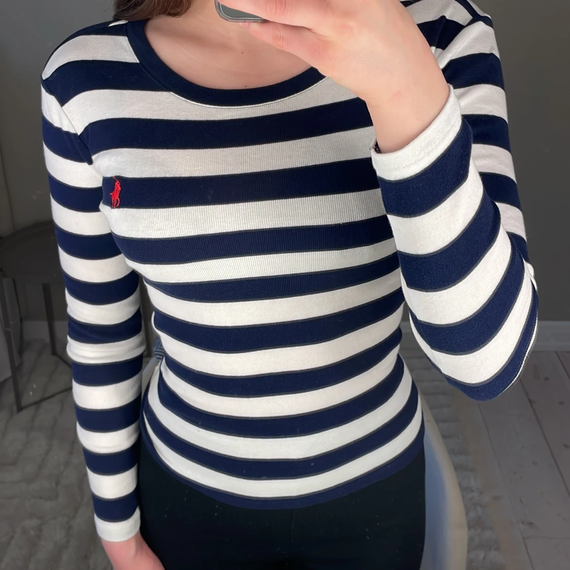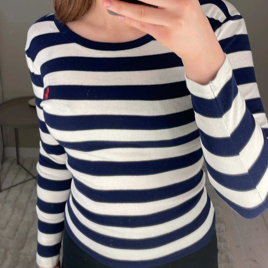 En fin mörkblå/vit randig Ralph lauren tröja, i strolek S🩷