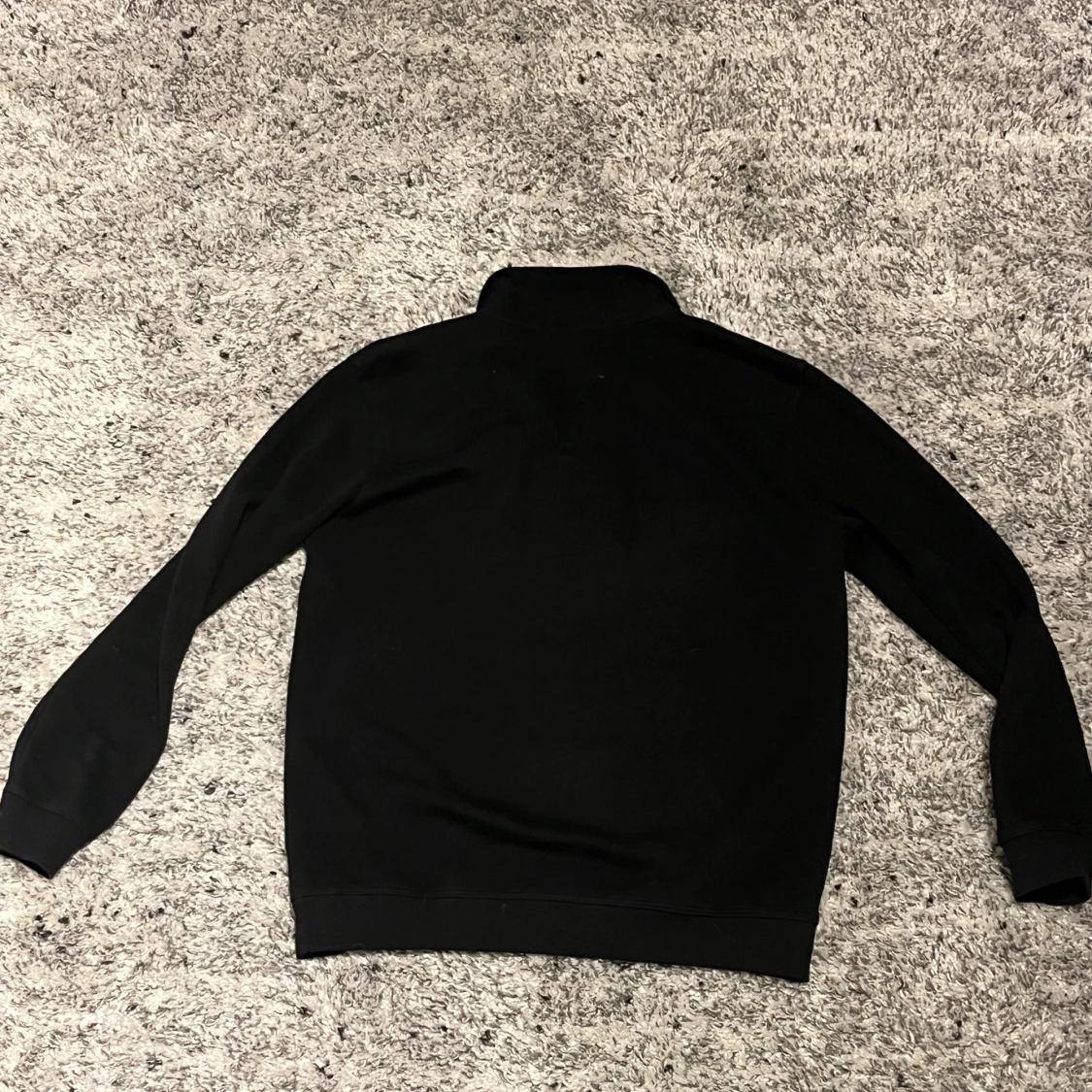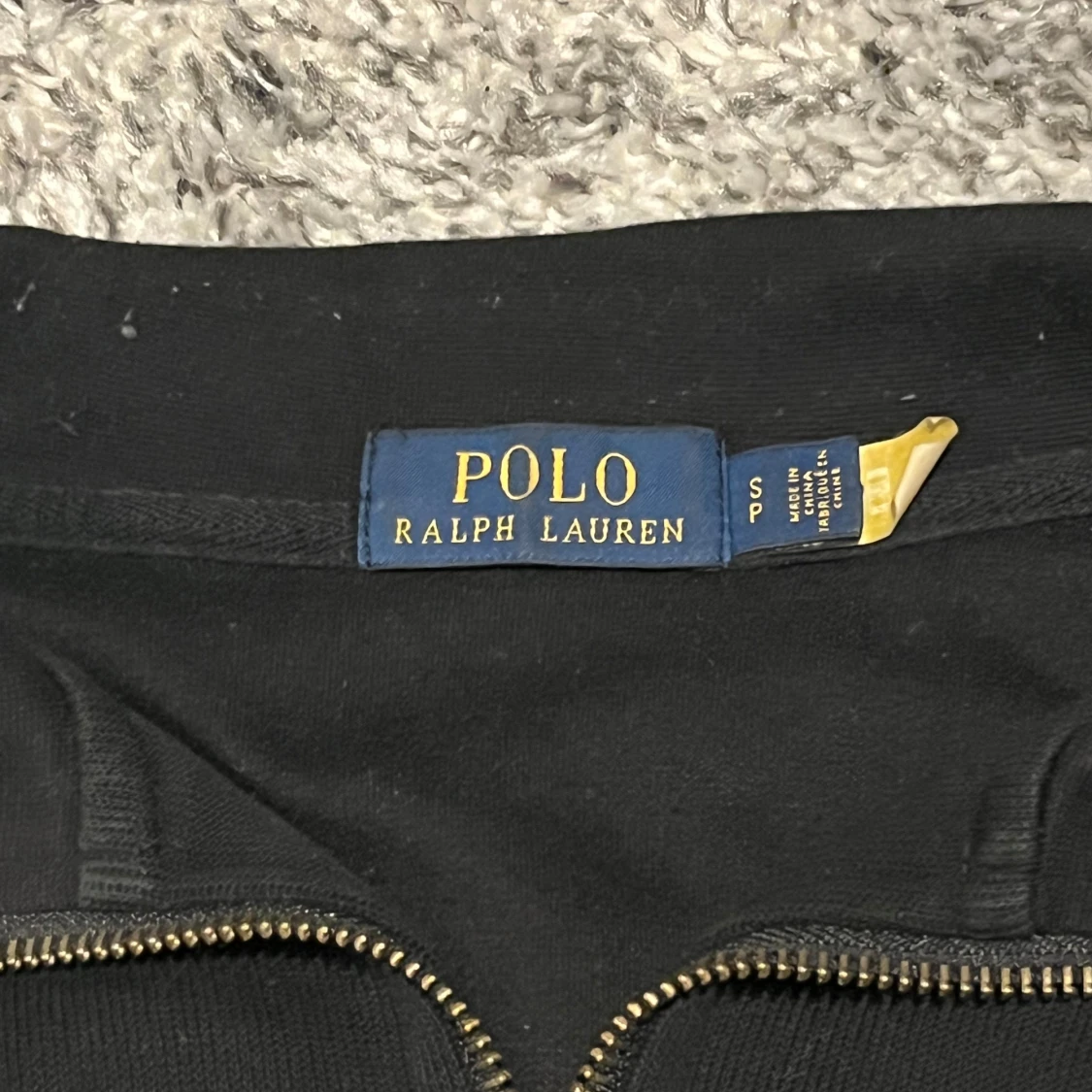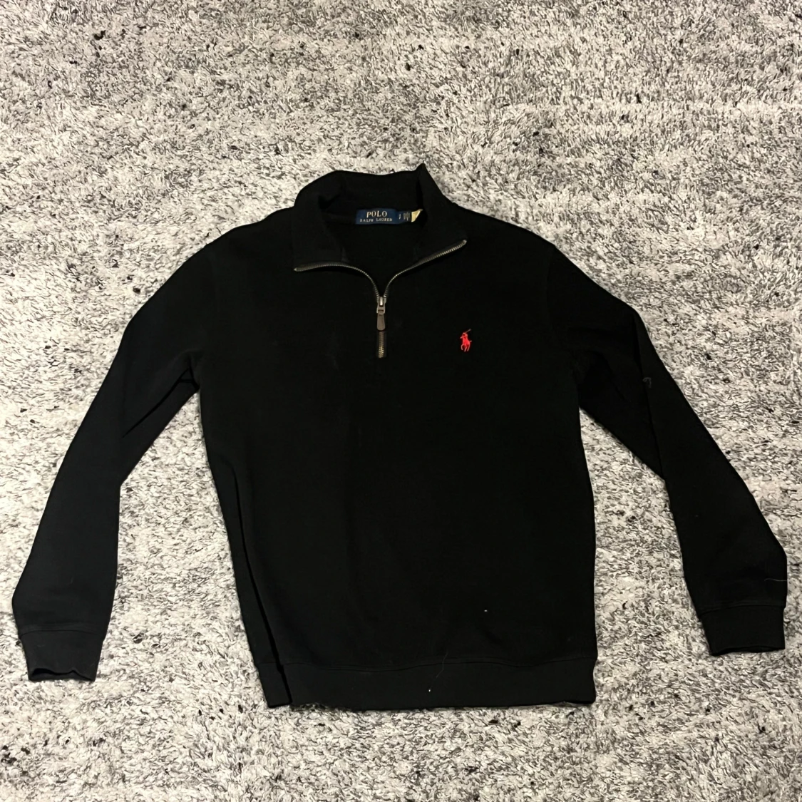 Säljer en stilren svart tröja från Ralph Lauren med en halv dragkedja framtill. Tröjan har långa ärmar och en liten röd logotyp på bröstet. Ägt den ett tag nu men skicket är bra