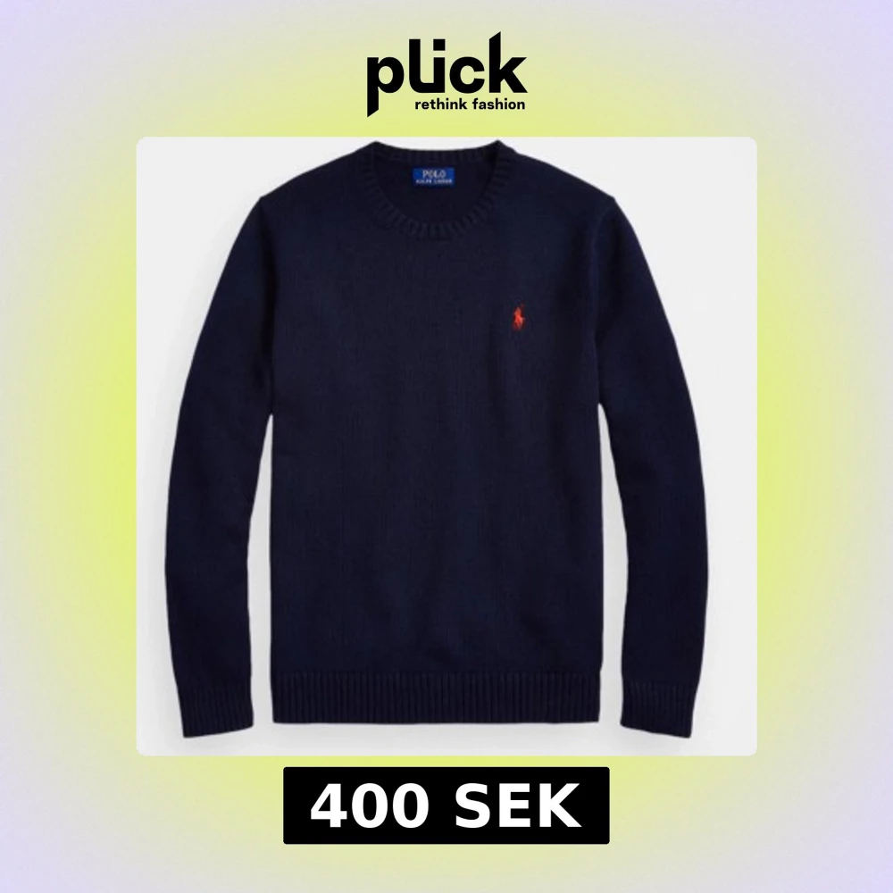 Mörkblå stickad tröja från Polo Ralph Lauren med rund halsringning och klassisk röd logga broderad på bröstet. Tröjan har långa ärmar och ribbade muddar vid ärmslut och nederkant. Perfekt för dig som gillar stilren och tidlös design. Den är i väldigt bra skick knappt använd!