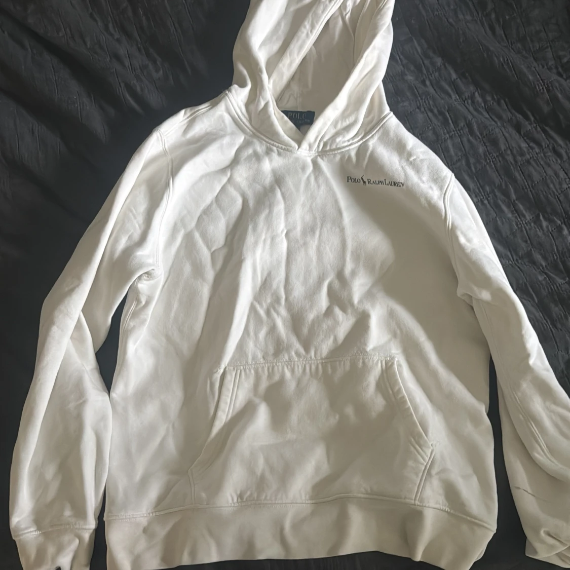 Vit hoodie från Polo Ralph Lauren med klassisk logga på bröstet. Tröjan har huva, känguruficka och långa ärmar. Tillverkad i mjuk bomull för en skön och avslappnad stil. Perfekt för dig som gillar stilrena och tidlösa plagg.