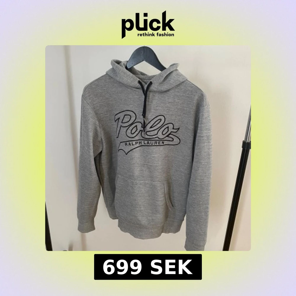 Snygg grå hoodie från Polo Ralph Lauren med stor logga framtill. Tröjan har huva med snörning och en klassisk känguruficka. Perfekt för chill dagar och enkel att matcha med jeans eller joggers.