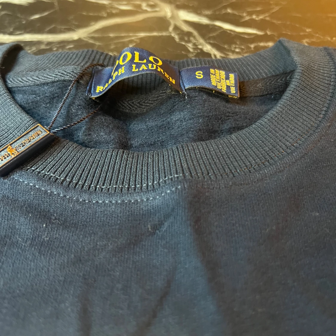 Snygg mörkblå tröja från Ralph Lauren med ikoniska Polo Bear-trycket framtill. Tröjan har rund halsringning, långa ärmar och ribbade muddar. Tillverkad i mjuk bomull som är skön att ha på sig. Perfekt för dig som gillar streetstyle och klassiska märken.
