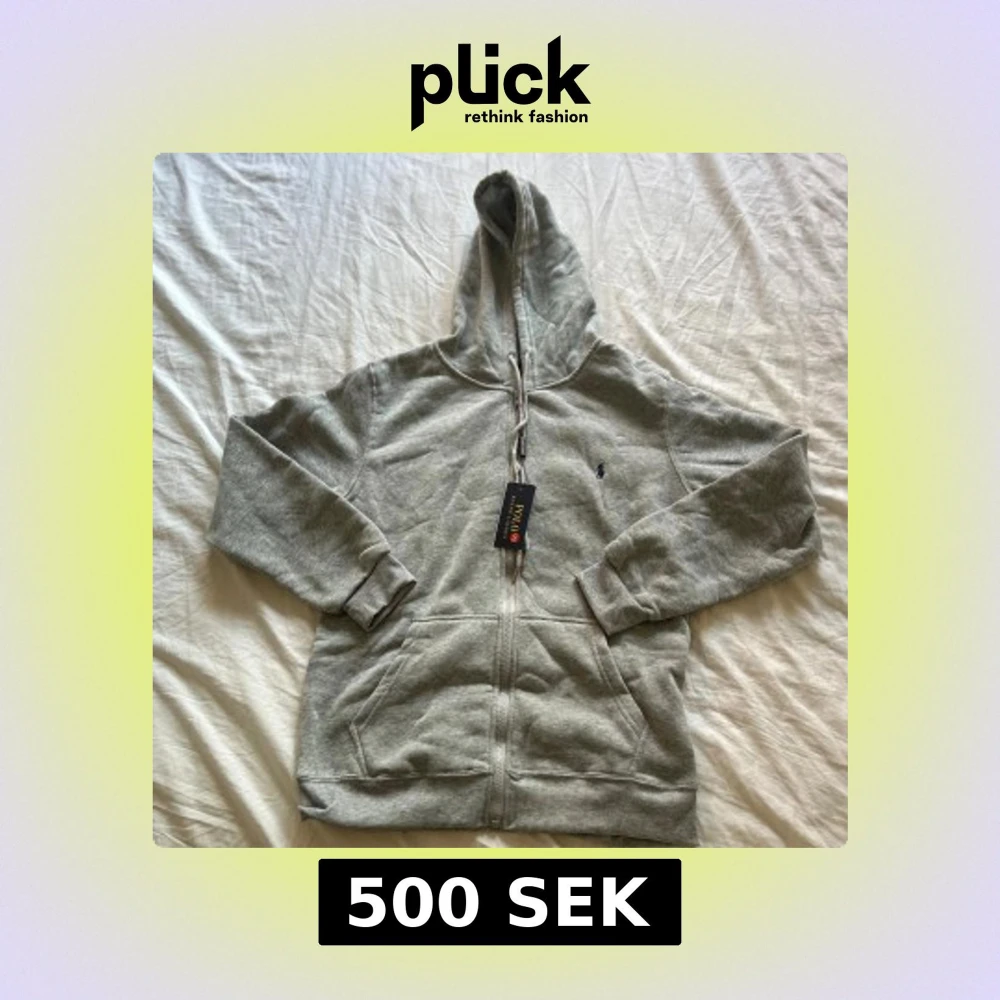 Säljer en grå hoodie från Polo Ralph Lauren med dragkedja och huva. Tröjan har snörning i huvan, två fickor fram och den klassiska broderade loggan på bröstet. Perfekt för chill dagar och enkel att matcha med jeans eller joggers.