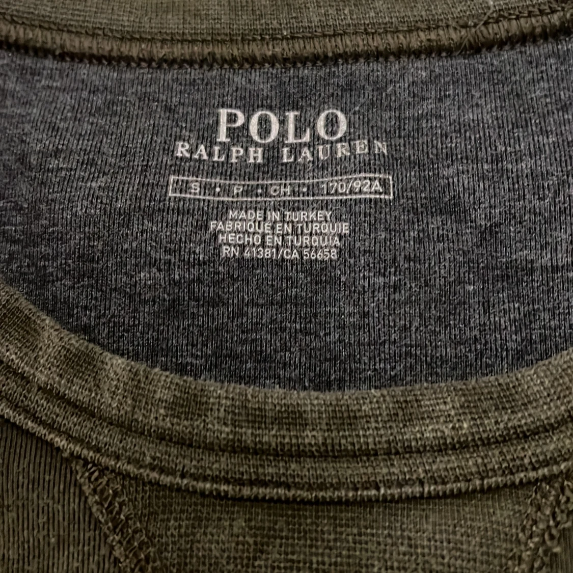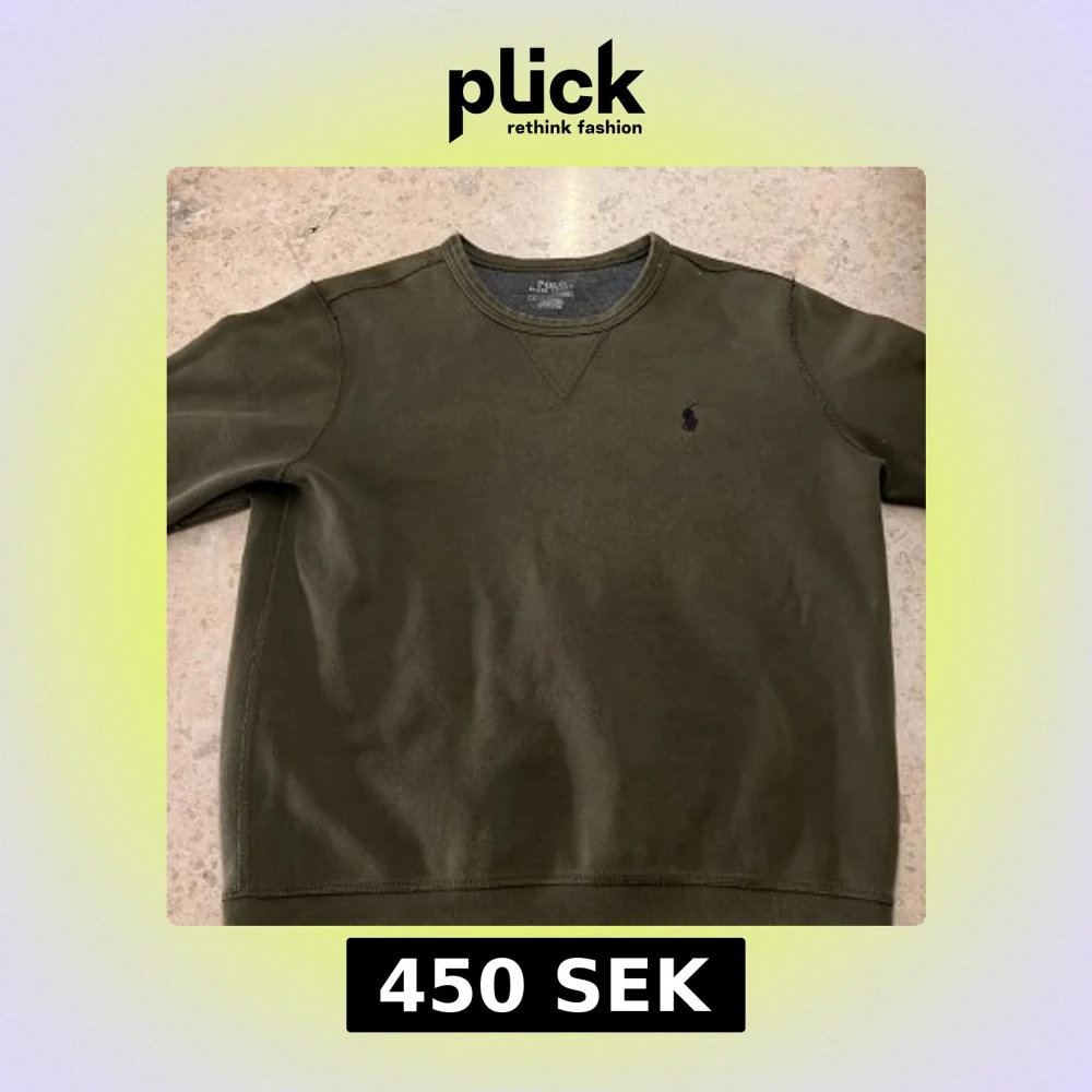 Säljer en stilren olivgrön tröja från Polo Ralph Lauren. Tröjan har en diskret logga på bröstet och är tillverkad i ett mjukt material. Perfekt för en avslappnad look.