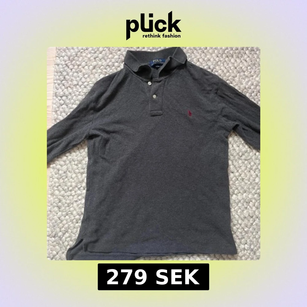 Snygg mörkgrå pikétröja från Ralph Lauren med klassisk krage och två knappar framtill. Tröjan har lång ärm och den ikoniska röda Polo-loggan broderad på bröstet. Passar S/xs