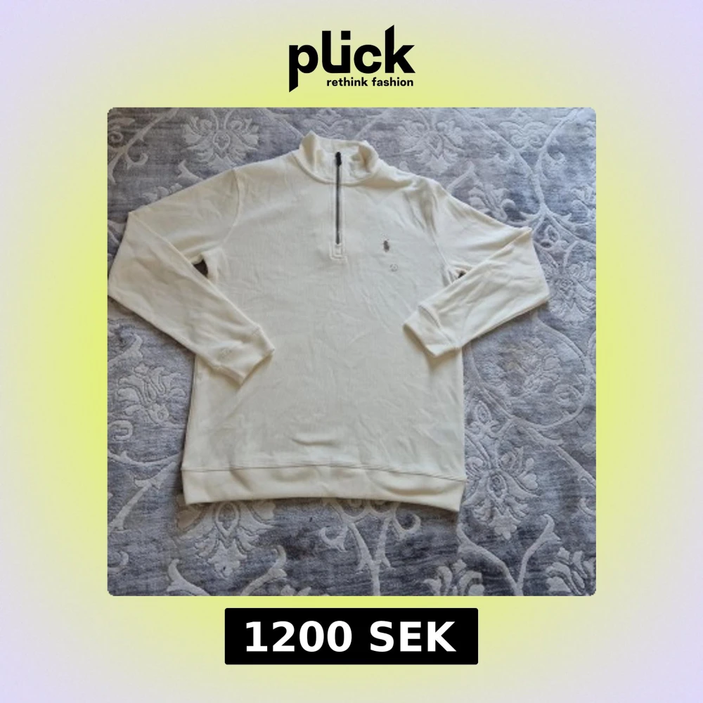 Säljer en stilren vit långärmad tröja från Polo Ralph Lauren med half zip och broderad logga på bröstet. Tröjan är i mjuk bomull och har en klassisk passform med ribbade muddar. Perfekt för lager-på-lager under höst och vinter.