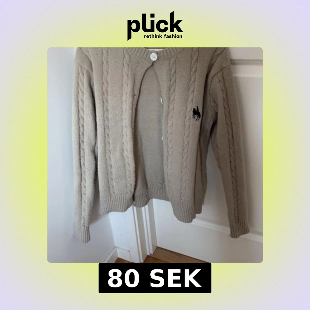 Kabelstickad beige kofta från Ralph Lauren med rund halsringning och knäppning framtill. Klassisk design med broderad logga på bröstet. Perfekt för lager-på-lager och enkel att matcha med olika outfits.