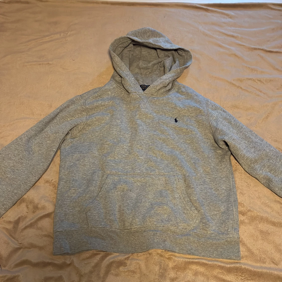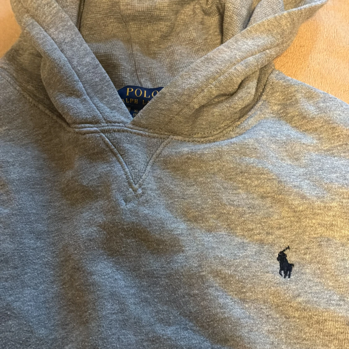 Säljer en grå hoodie från Polo Ralph Lauren i storlek S tröjan har huva, känguruficka och det klassiska Polo-logot på bröstet. Mjuk bomullskvalitet och långärmad modell, perfekt för chill dagar. Enkelt och stilrent plagg som funkar till jeans eller joggers.