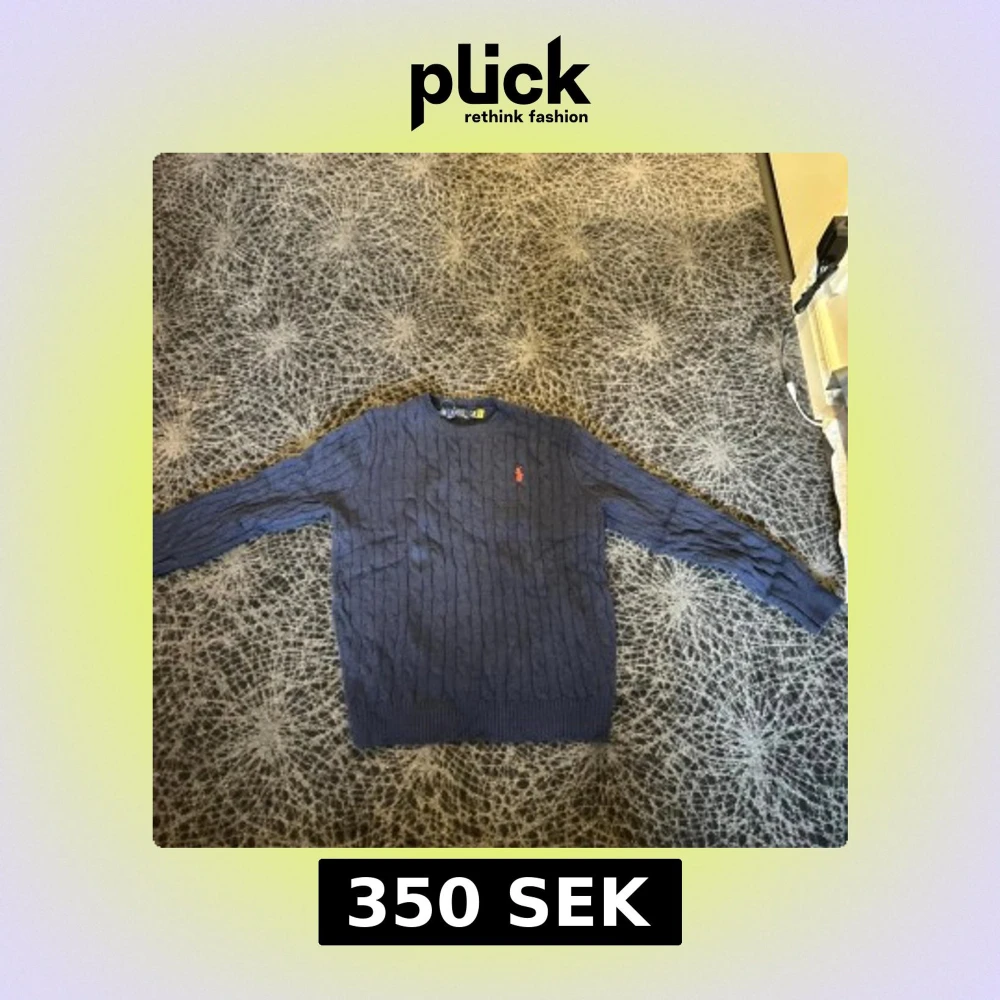 Snygg mörkblå kabelstickad tröja från Polo Ralph Lauren i 100% bomull. Klassisk rund hals och långärmad modell med röd broderad logga på bröstet. Perfekt för dig som vill ha en stilren och tidlös look.