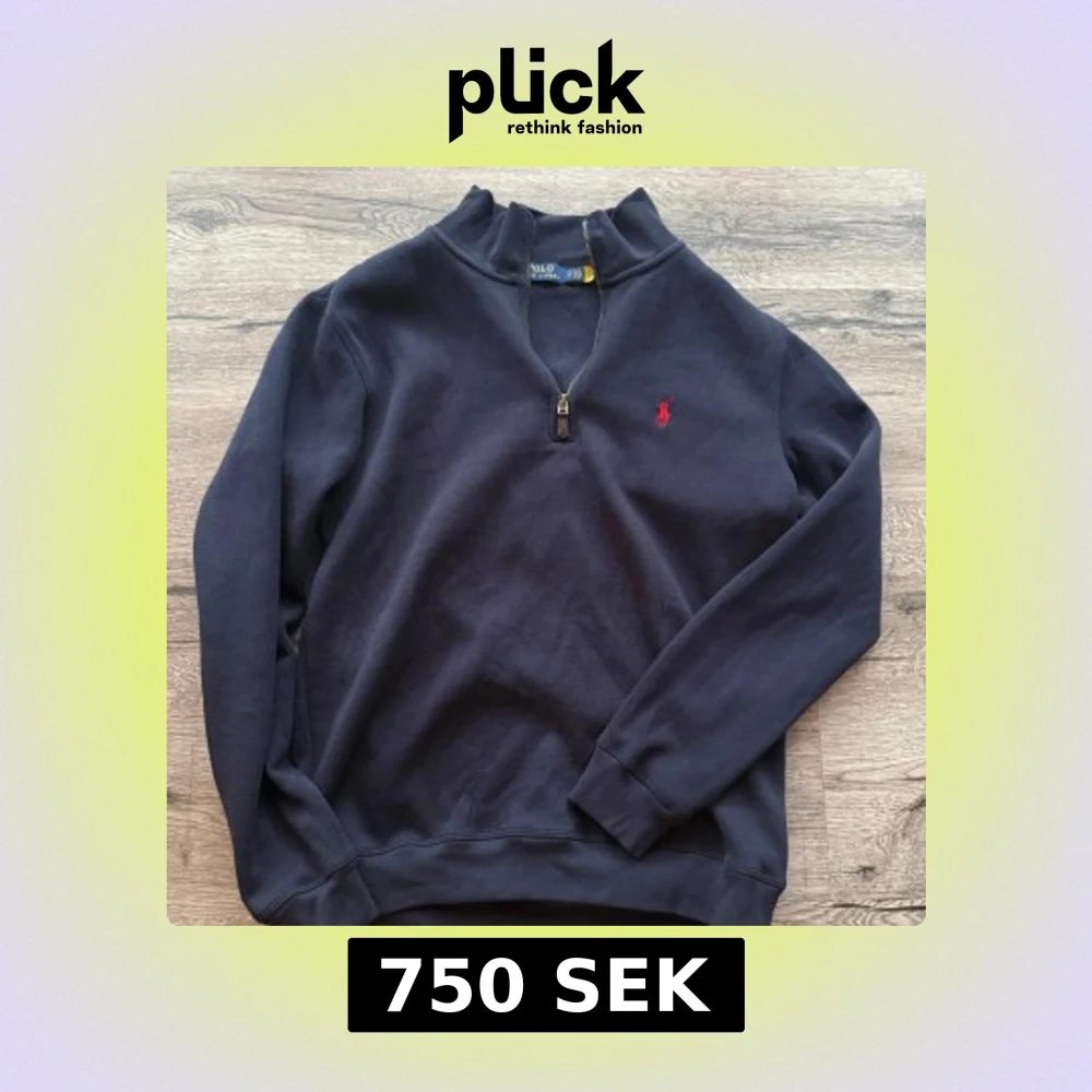 Mörkblå långärmad tröja från Polo Ralph Lauren med halv dragkedja och röd broderad logga på bröstet. Klassisk och stilren modell med ribbade muddar vid ärmslut och nederkant. Helt ny endast använd en gång. Skicka Pm vid minsta fundering
