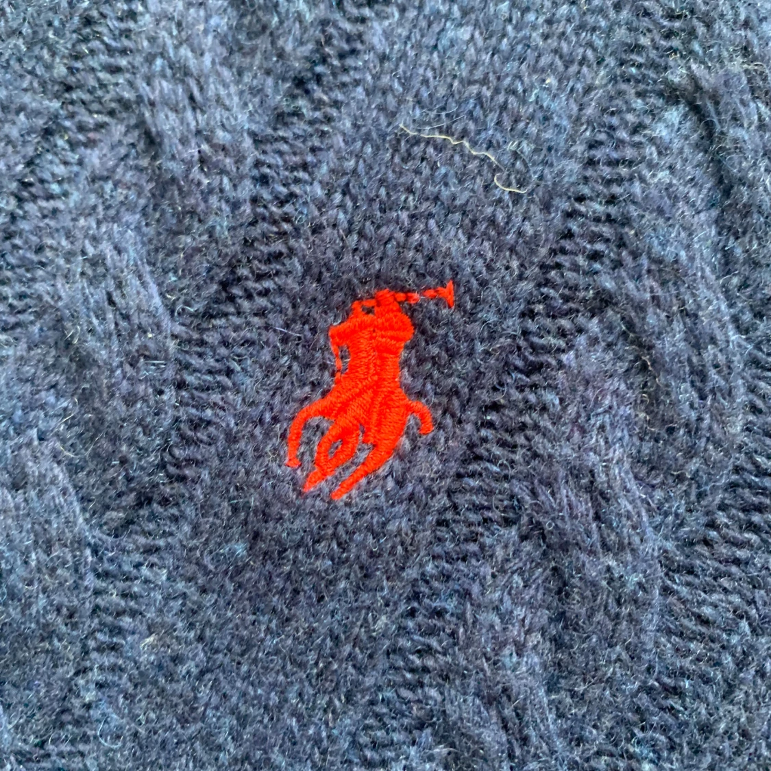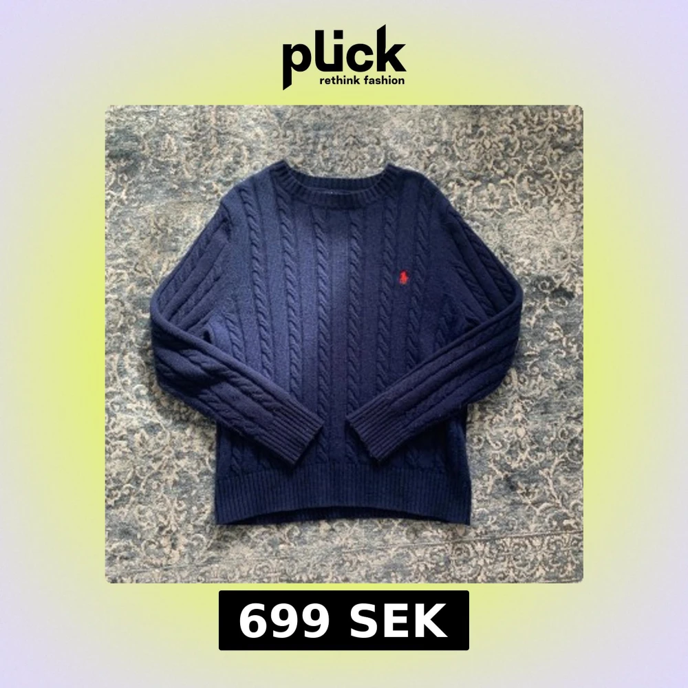 Säljer en mörkblå kabelstickad tröja från Polo Ralph Lauren. Den har tagits väl hand om och är i prima skick utan någon defekt, den är fräsch och redo för ny ägare🙌