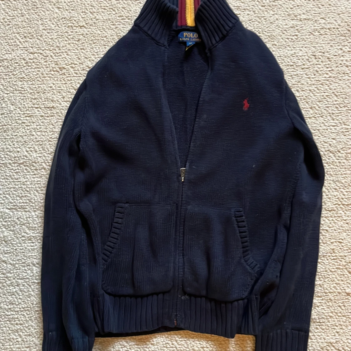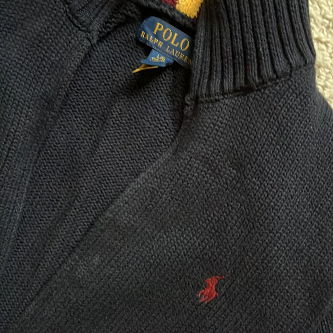 En riktigt snygg Ralph lauren tröja som är rätt så sliten å använd men fortfarande i ett hyfsat skick (ej tvättad och fläckar på) 6/10! Nypris: 1200 Vårt pris: 199kr