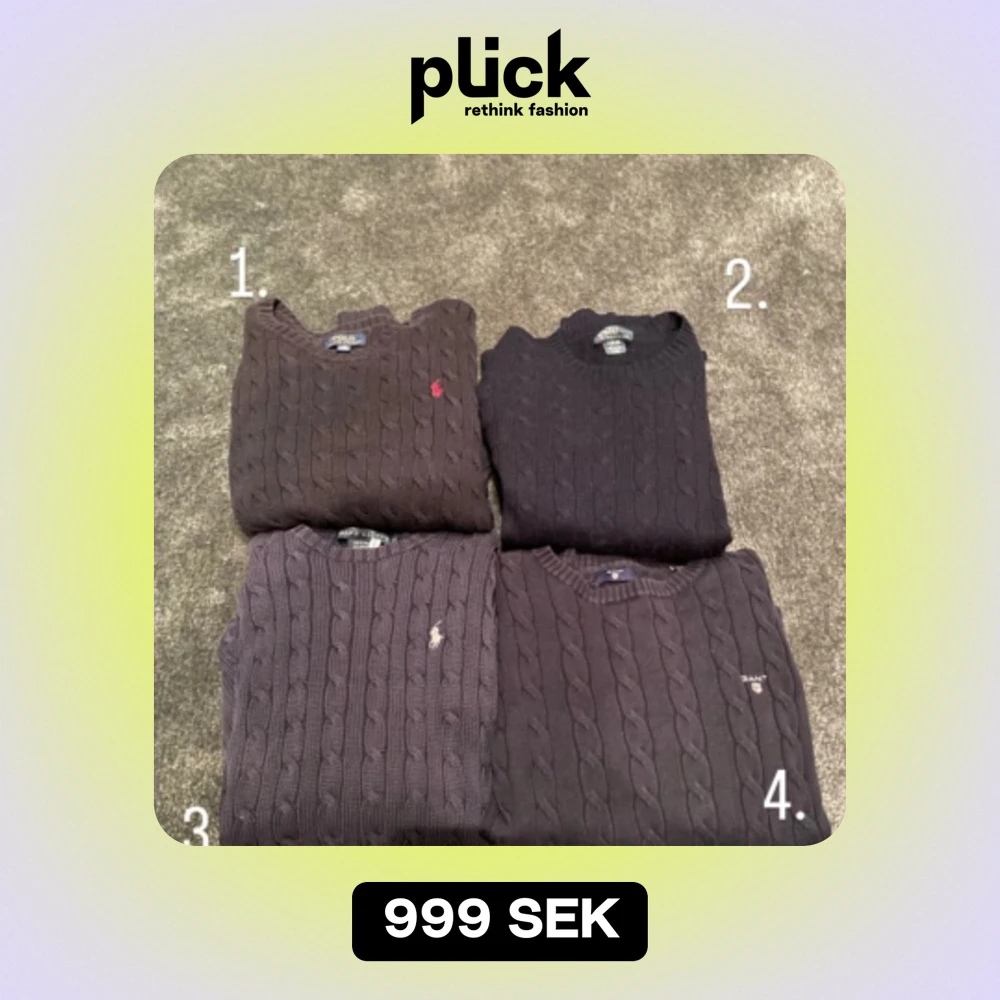1.Stickad Ralph lauren tröja, storlek L(14-16) och är 100% cotten,färg svart+röd, 275kr 2.Kashmire stickad Ralph lauren, L(14-16), 100%kashmire och är blå,350kr 3.Ralph lauren tröja storlek M 100% cotten,250kr 4.Gant tröja blå 13-14, 100%cotten,200kr