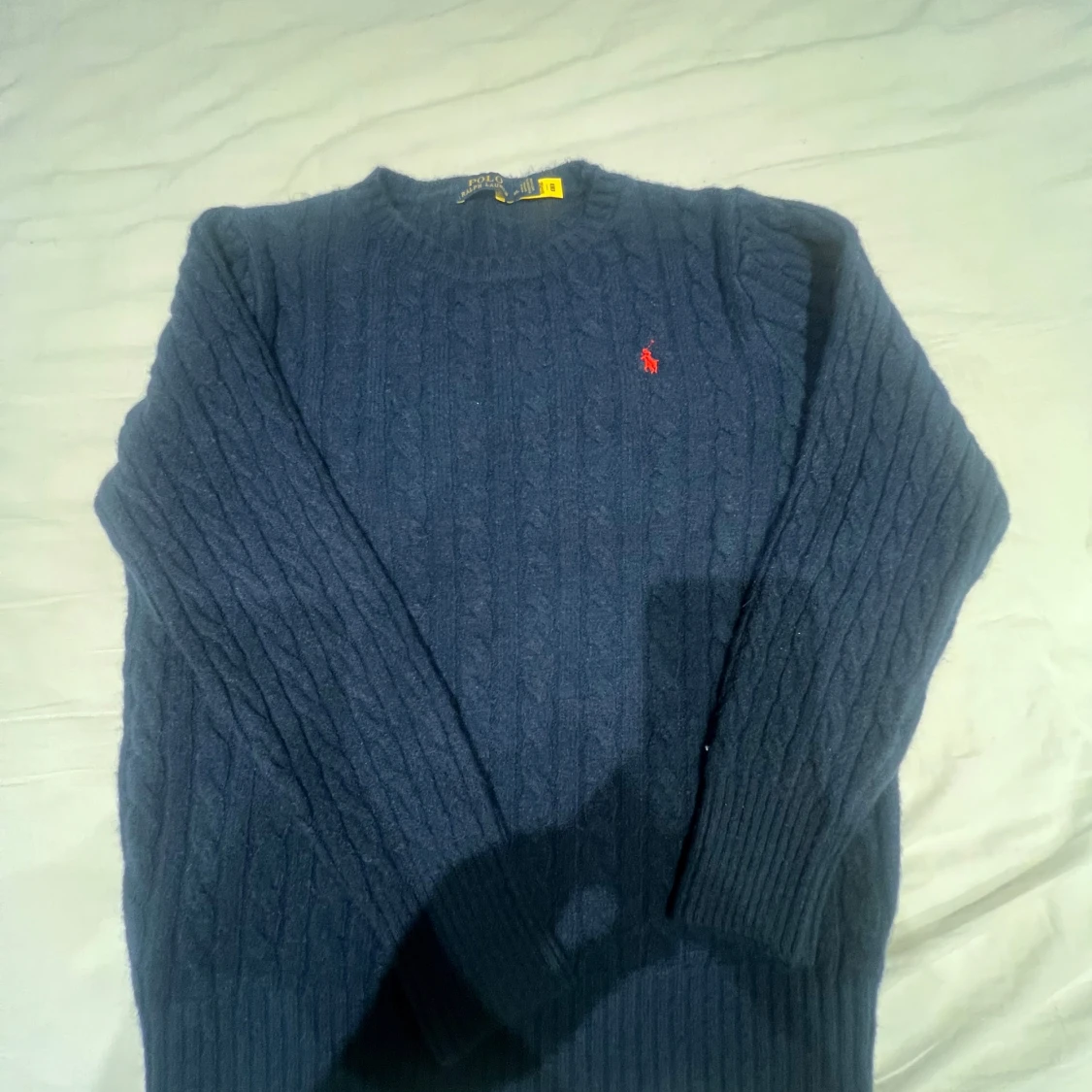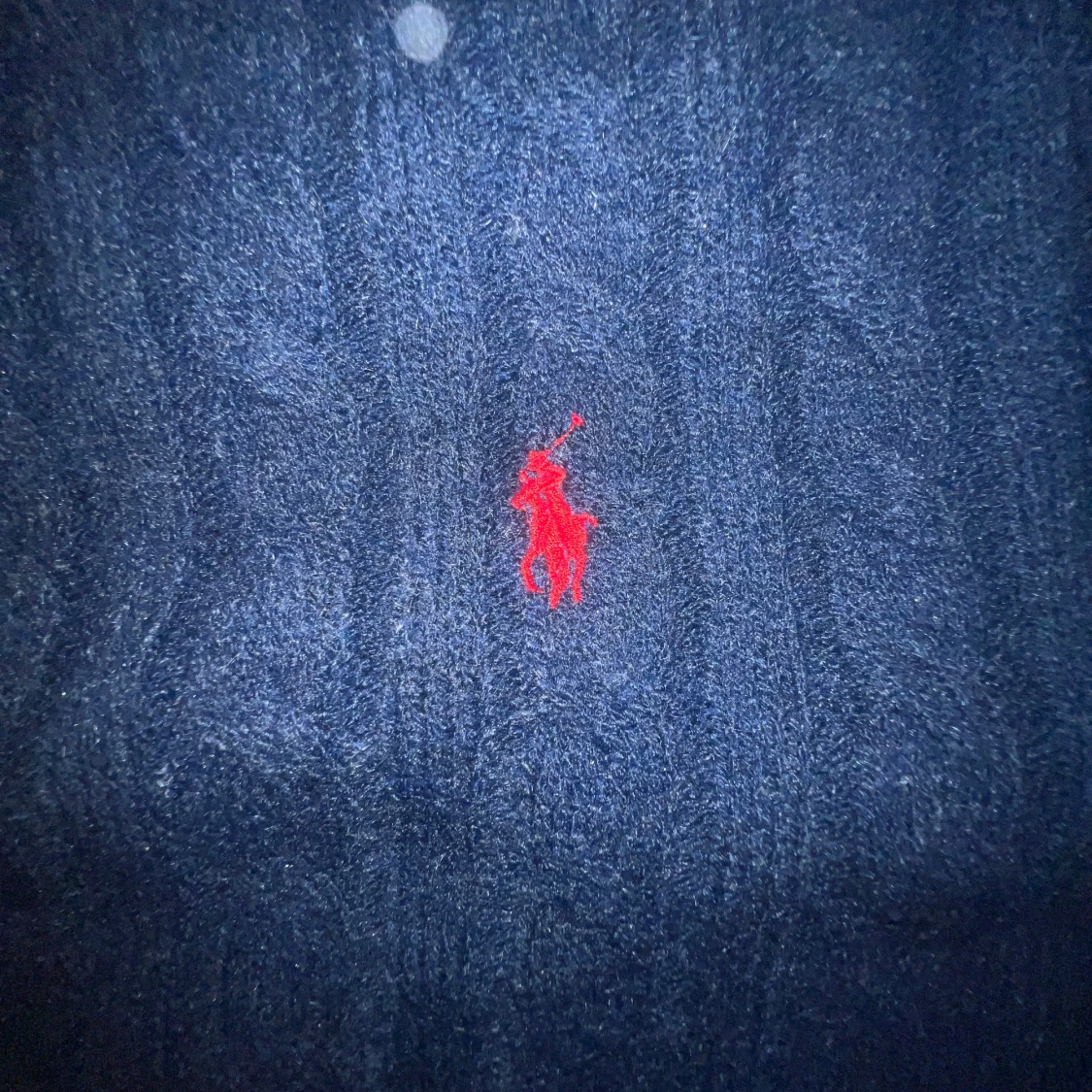 Mörkblå kabelstickad tröja från Polo Ralph Lauren i storlek XL men passar mer som M. Klassisk rund halsringning, långa ärmar och röd broderad logga på bröstet. Tröjan är gjord i mjukt material och har ribbade muddar vid ärmslut och nederkant. Pris går alltid att diskutera MVH NORD1C