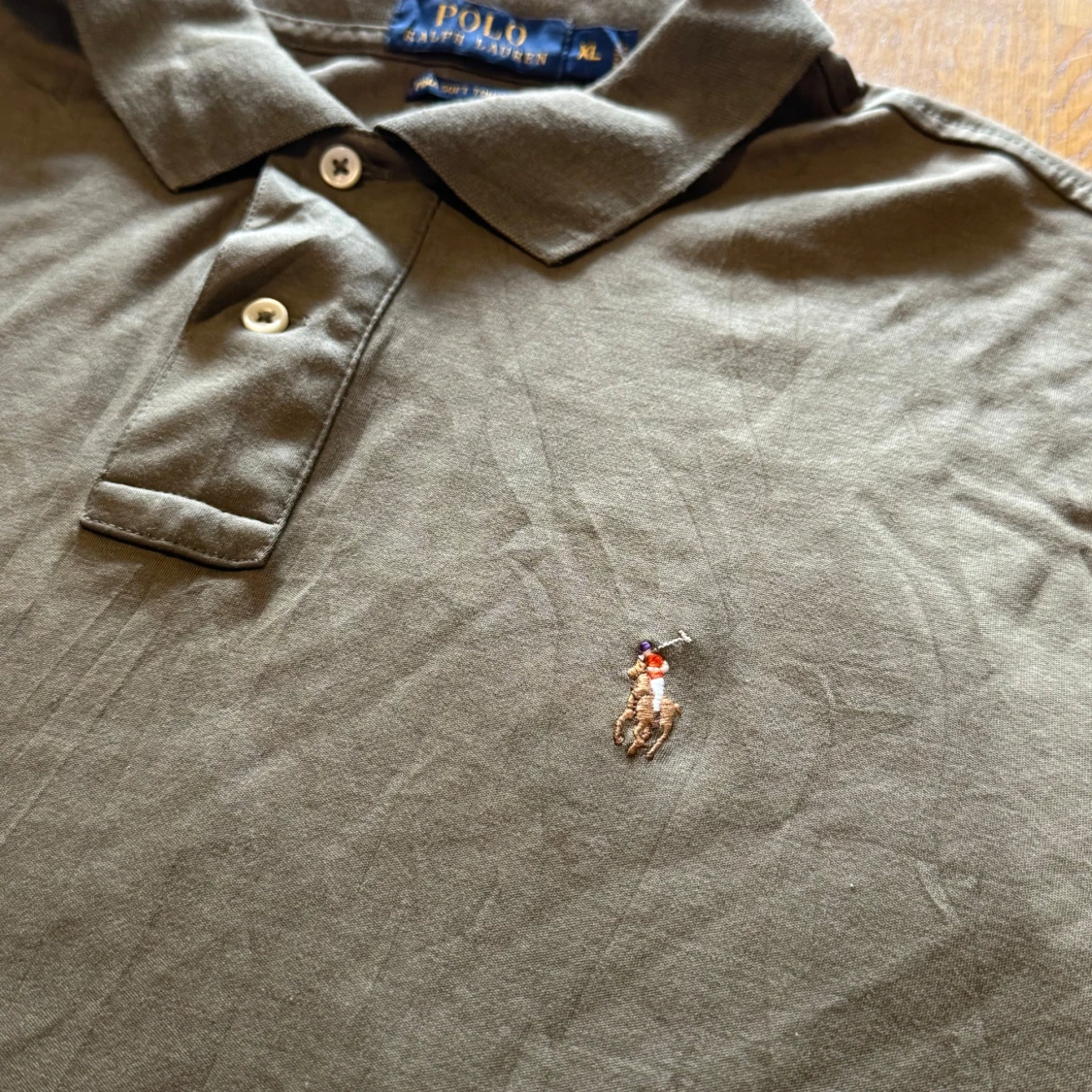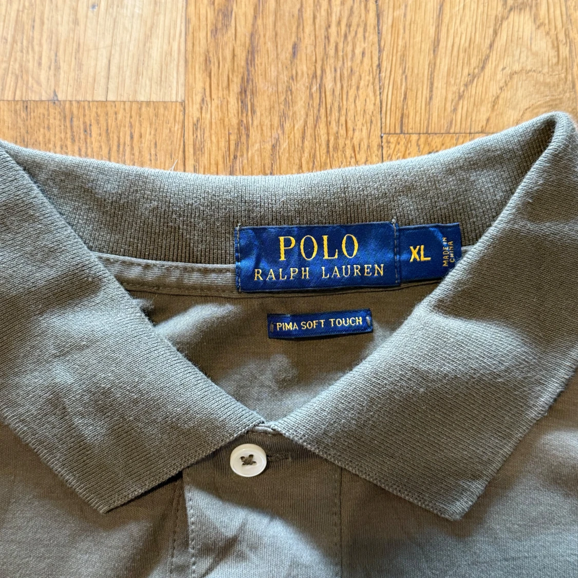 Snygg olivgrön pikétröja från Polo Ralph Lauren i mjuk bomull. Klassisk krage, två knappar och ikoniska broderade loggan på bröstet. Perfekt för en clean och avslappnad stil. Passar dig som gillar tidlös design och premiumkänsla.