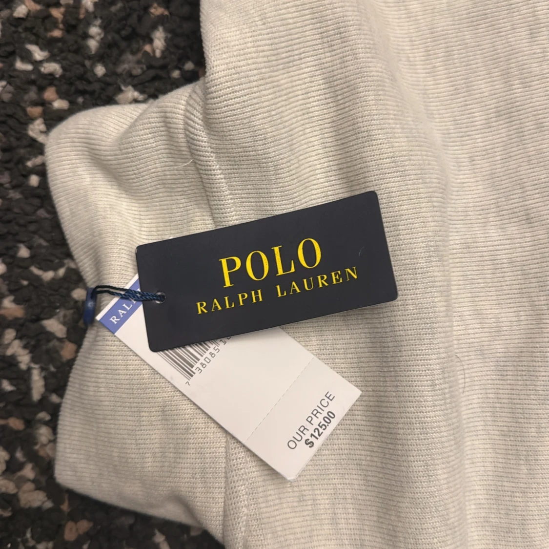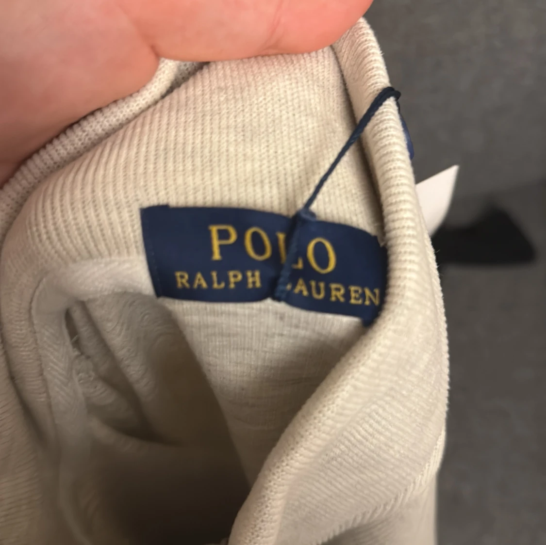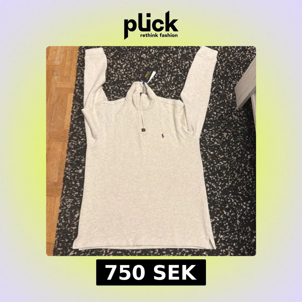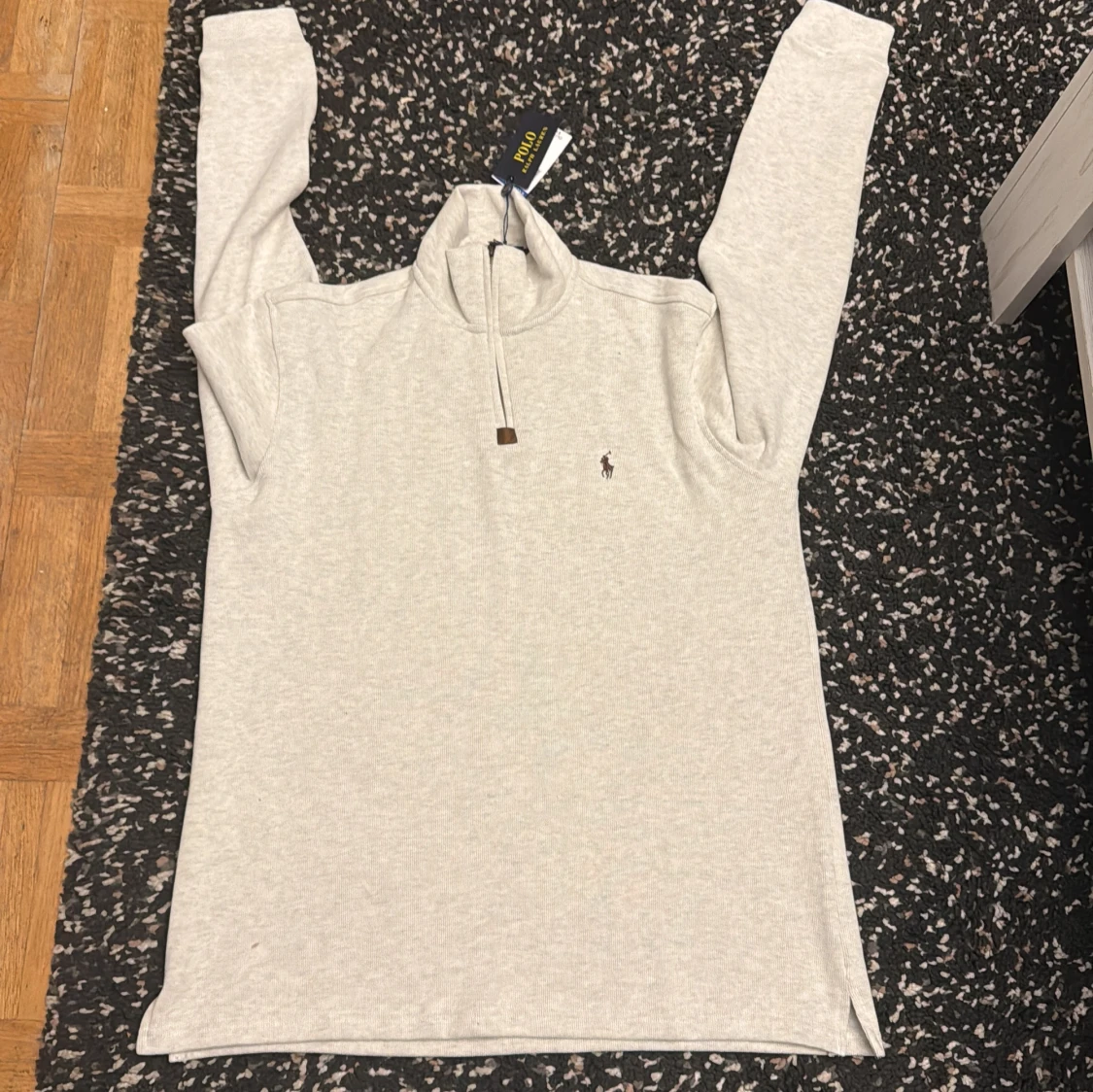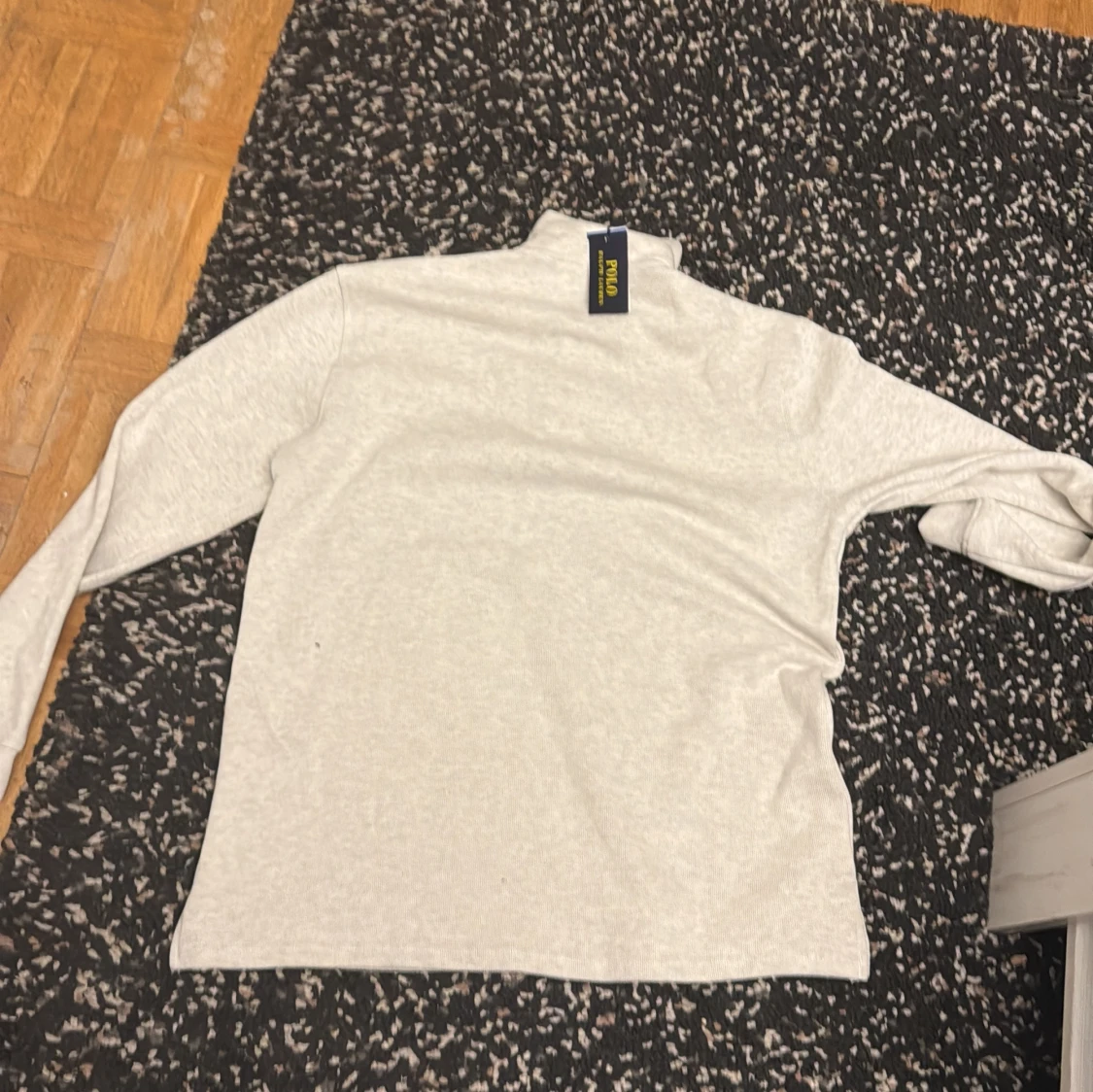 Snygg ljusgrå långärmad tröja från Polo Ralph Lauren med half zip och klassisk broderad logga på bröstet. Tröjan har en hög krage och är tillverkad i mjuk bomull, perfekt för lager-på-lager-stil.