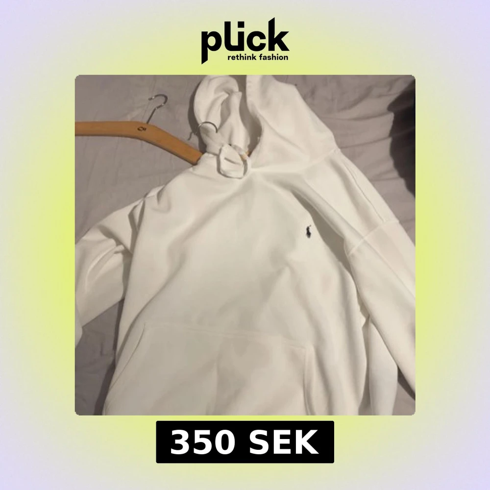 Säljer en stilren vit hoodie från Ralph Lauren med klassisk huva och känguruficka. Tröjan har en liten broderad logga på bröstet och är perfekt för en clean och avslappnad look. Storlek XL men passar XXL